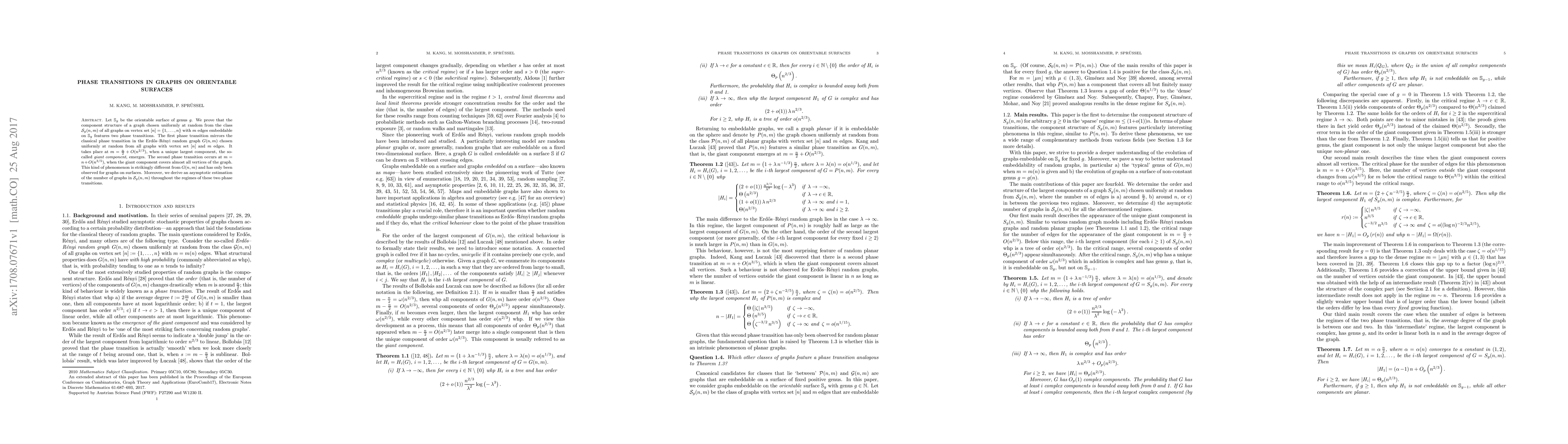 The paper establishes the existence of two distinct phase transitions in the embedding of random graphs on orientable surfaces, providing detailed asymptotic estimations for the number of such graphs.