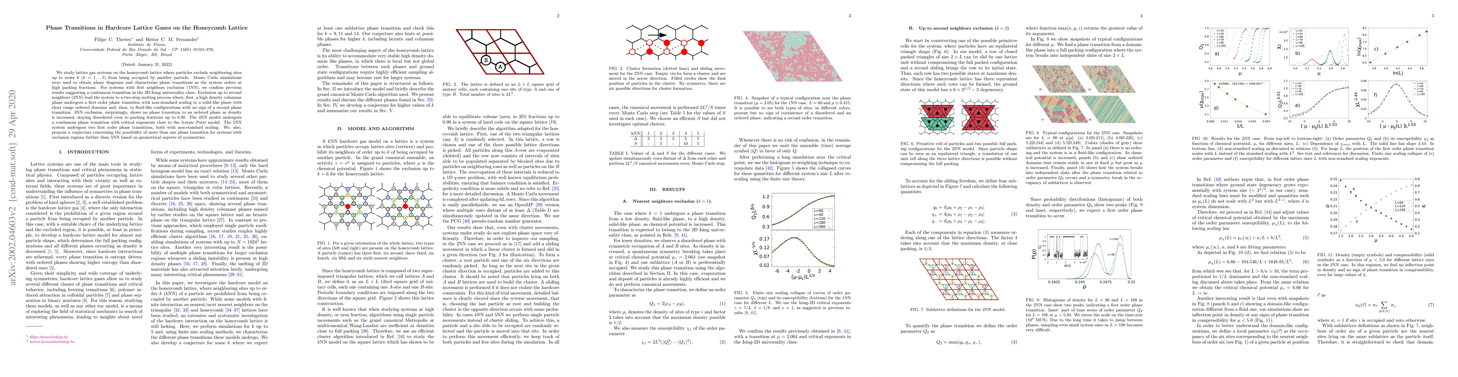We study lattice gas systems on the honeycomb lattice where particles exclude neighboring sites up to order $k$ ($k=1\ldots5$) from being occupied by another particle. Monte Carlo simulations were used to obtain phase diagrams and characterize phase transitions as the system orders at high packing fractions. For systems with first neighbors exclusion (1NN), we confirm previous results suggesting a continuous transition in the 2D-Ising universality class. Exclusion up to second neighbors (2NN) lead the system to a two-step melting process where, first, a high density columnar phase undergoes a first order phase transition with non-standard scaling to a solid-like phase with short range ordered domains and, then, to fluid-like configurations with no sign of a second phase transition. 3NN exclusion, surprisingly, shows no phase transition to an ordered phase as density is increased, staying disordered even to packing fractions up to 0.98. The 4NN model undergoes a continuous phase transition with critical exponents close to the 3-state Potts model. The 5NN system undergoes two first order phase transitions, both with non-standard scaling. We, also, propose a conjecture concerning the possibility of more than one phase transition for systems with exclusion regions further than 5NN based on geometrical aspects of symmetries.