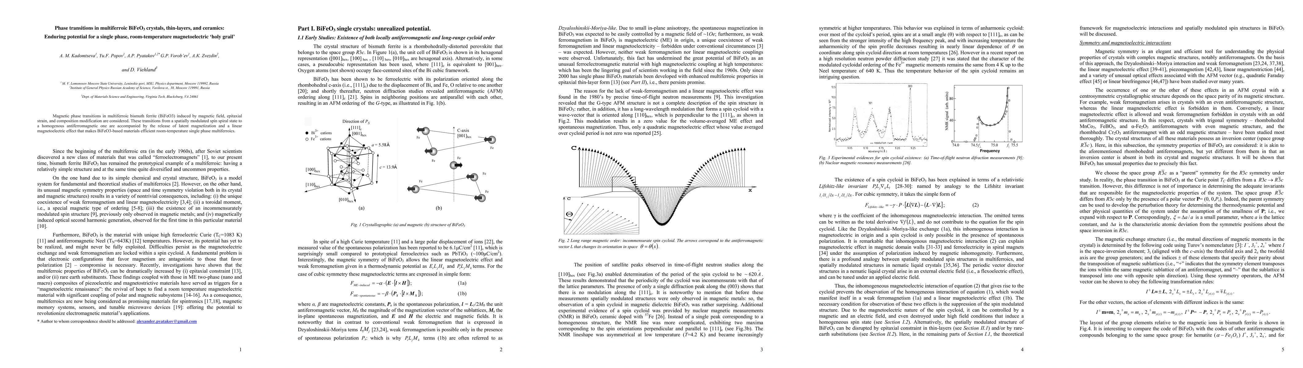 Magnetic phase transitions in multiferroic bismuth ferrite (BiFeO3) induced by magnetic field, epitaxial strain, and composition modification are considered. These transitions from a spatially modulated spin spiral state to a homogenous antiferromagnetic one are accompanied by the release of latent magnetization and a linear magnetoelectric effect that makes BiFeO3-based materials efficient room-temperature single phase multiferroics.