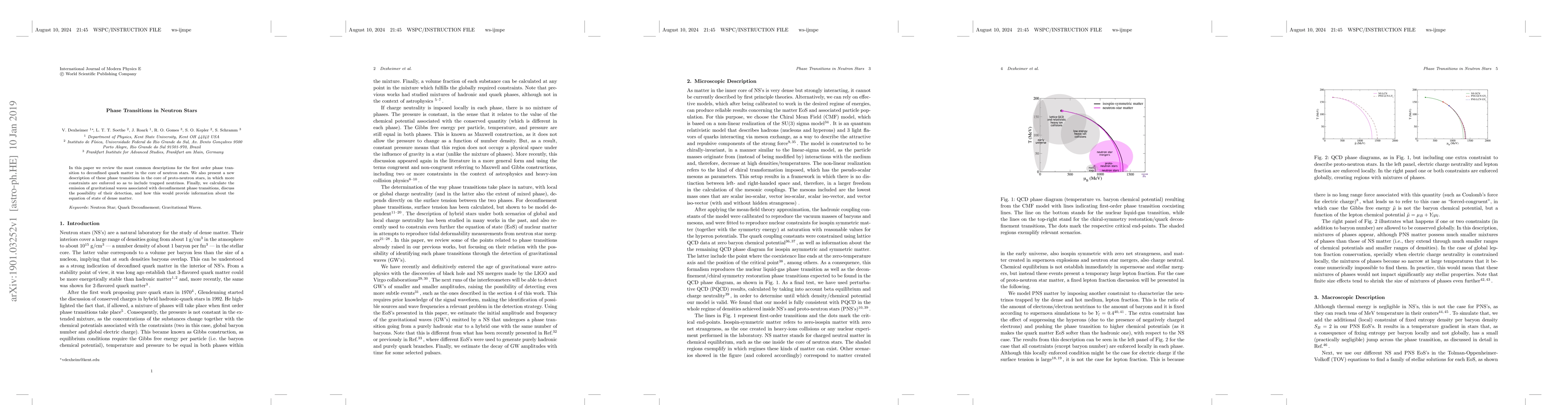 This paper reviews first-order phase transitions to deconfined quark matter in neutron star cores and introduces a new model for proto-neutron stars that accounts for trapped neutrinos. It also explores the gravitational waves emitted during these transitions and their potential for revealing insights into the equation of state of dense matter.