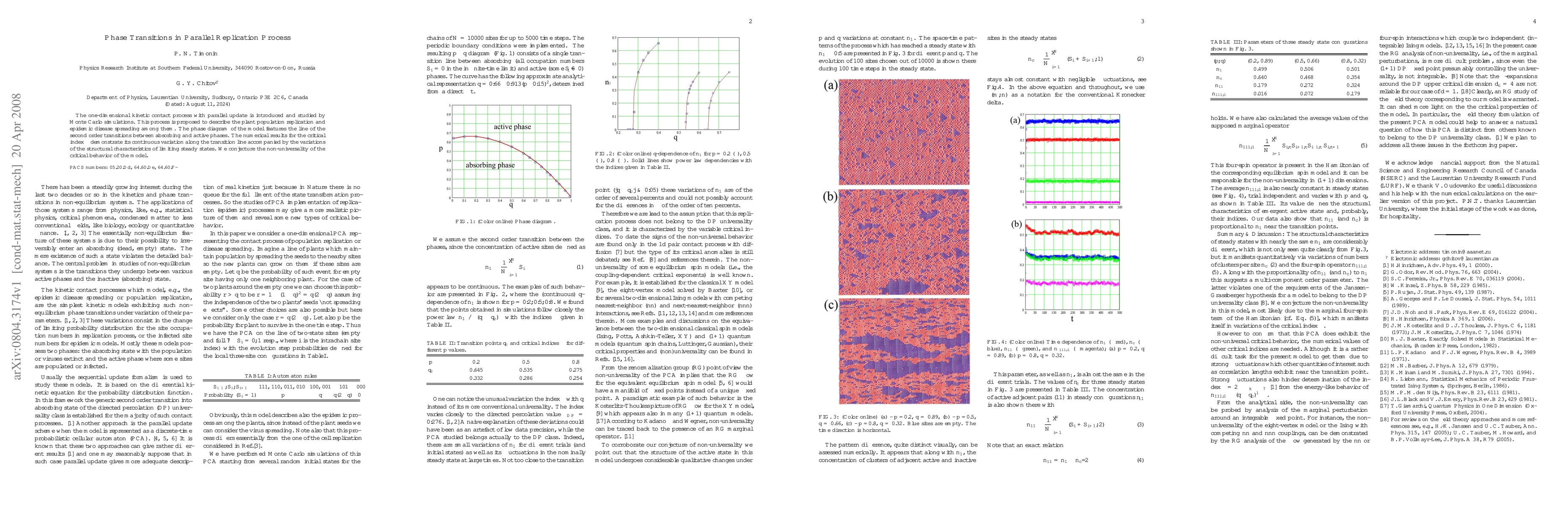 The one-dimensional kinetic contact process with parallel update is introduced and studied by Monte Carlo simulations. This process is proposed to describe the plant population replication and epidemic disease spreading among them. The phase diagram of the model features the line of the second order transitions between absorbing and active phases. The numerical results for the critical index beta demonstrate its continuous variation along the transition line accompanied by the variations of the structural characteristics of limiting steady states. We conjecture the non-universality of the critical behavior of the model.