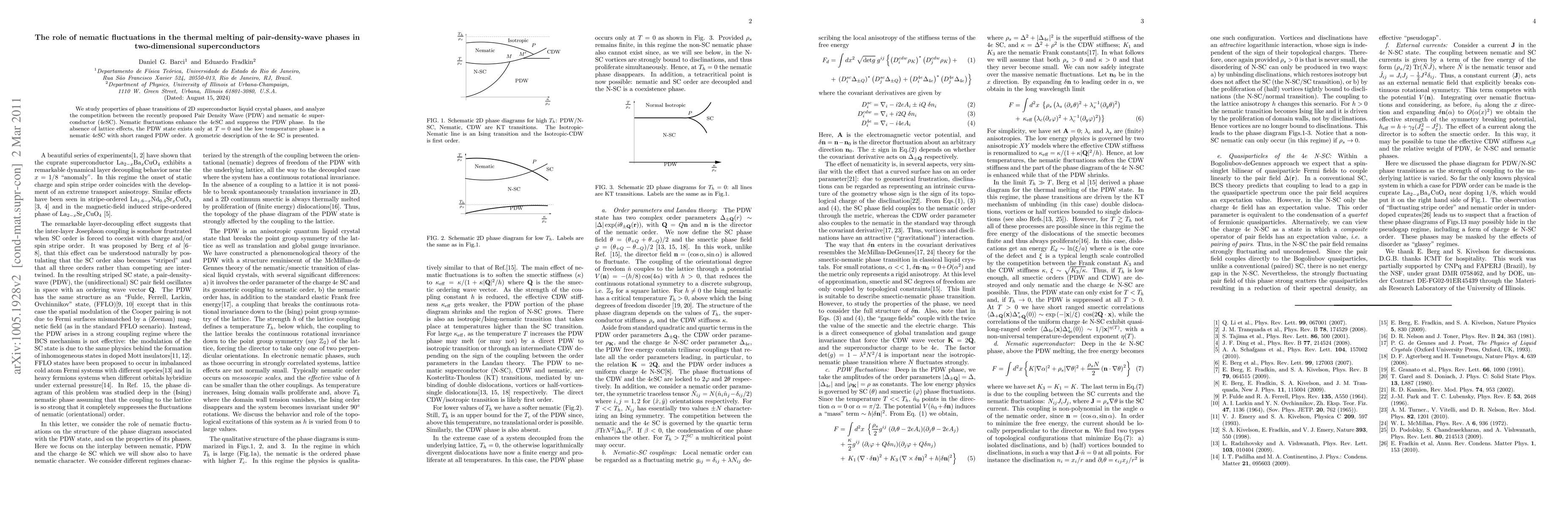 We study properties of phase transitions of 2D superconductor liquid crystal phases, and analyze the competition between the recently proposed Pair Density Wave (PDW) and nematic $4e$ superconductor ($4e$SC). Nematic fluctuations enhance the $4e$SC and suppress the PDW phase. In the absence of lattice effects, the PDW state exists only at T=0 and the low temperature phase is a nematic $4e$SC with short ranged PDW order. A geometric description of the $4e$ SC is presented.
