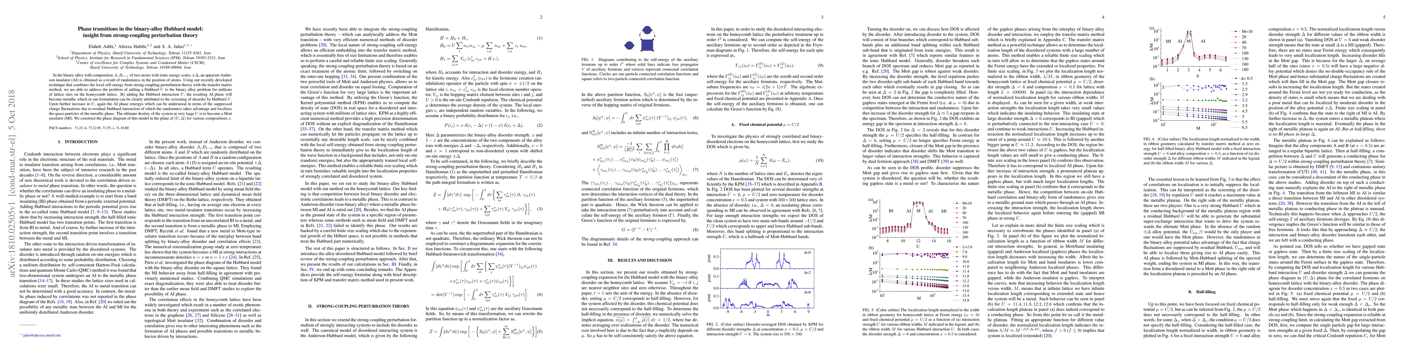 This paper explores phase transitions in a binary-alloy Hubbard model using strong-coupling perturbation theory, revealing that adding Hubbard interaction $U$ initially transforms an Anderson insulator into a metal due to disorder screening, then back to an insulator as charge fluctuations are suppressed, ultimately leading to a Mott insulator at large $U$. The study constructs a phase diagram in the $U$-$\Delta$ plane for different alloy compositions.