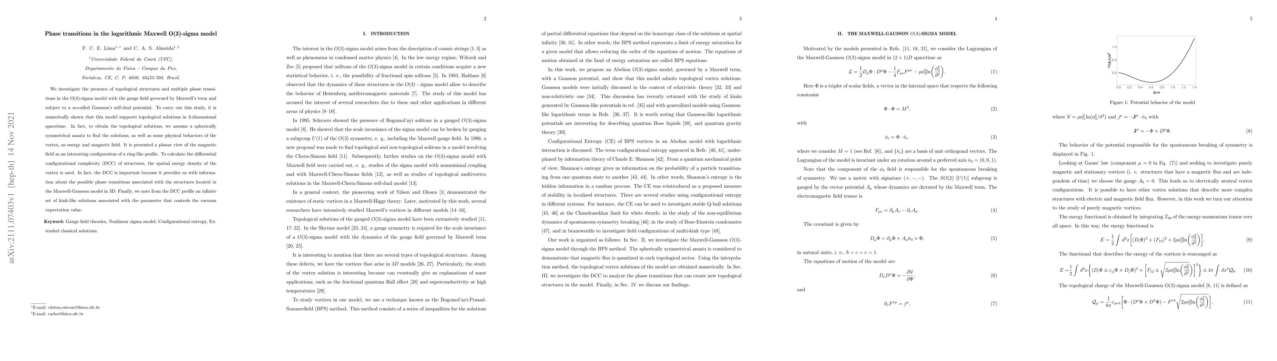 This paper numerically explores topological structures and phase transitions in the O(3)-sigma model with Maxwell's gauge field and Gausson's self-dual potential, revealing a spherically symmetric ansatz that supports ring-like magnetic field configurations. The differential configurational complexity (DCC) analysis indicates an infinite set of kink-like phase transitions linked to the vacuum expectation value parameter.
