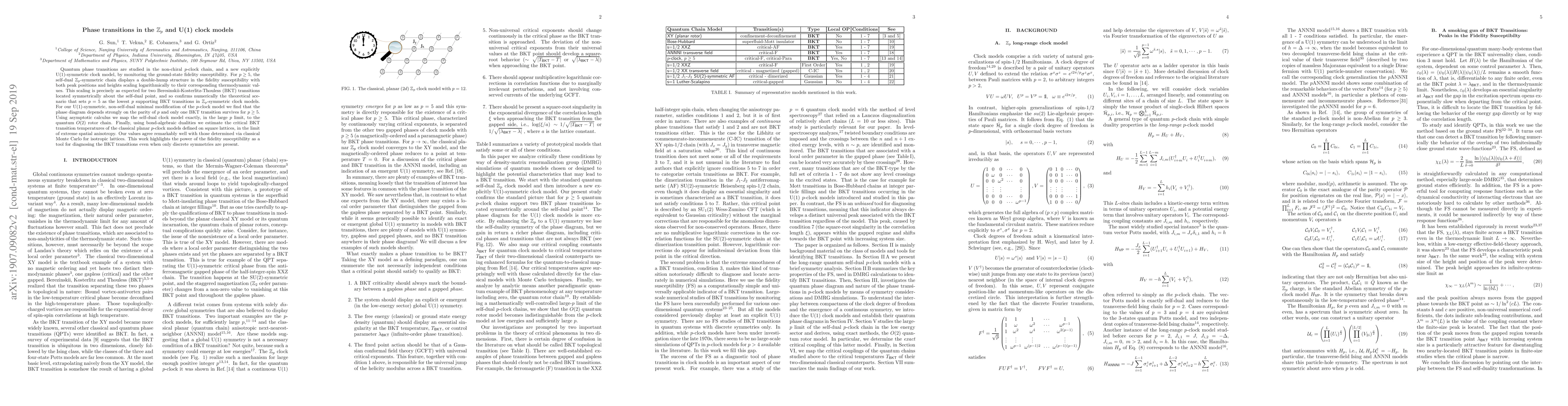 This paper investigates quantum phase transitions in $\mathbb{Z}_p$ and U(1) clock models, finding that for $p \geq 5$, the $\mathbb{Z}_p$-symmetric chain exhibits a double-hump structure in fidelity susceptibility, indicative of two BKT transitions. The study also reveals that the U(1)-symmetric model shows a single BKT transition for $p \geq 5$, and confirms the theoretical prediction of $p=5$ as the lowest $p$ supporting BKT transitions in $\mathbb{Z}_p$-symmetric models.