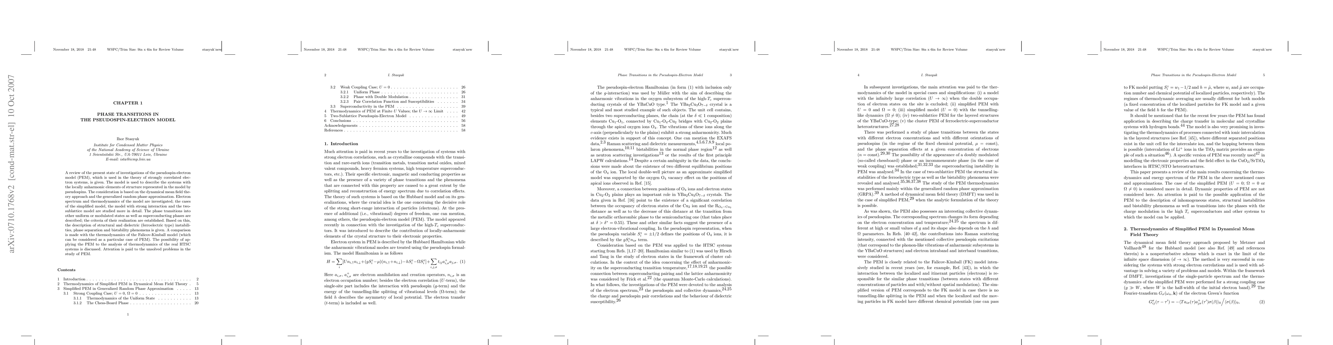 This paper reviews the pseudospin-electron model (PEM) for strongly correlated electron systems, focusing on phase transitions and thermodynamic properties using dynamical mean field theory and generalized random phase approximation. It discusses structural and dielectric instabilities, phase separation, and the applicability of PEM to high-temperature superconductors, while highlighting remaining research challenges.