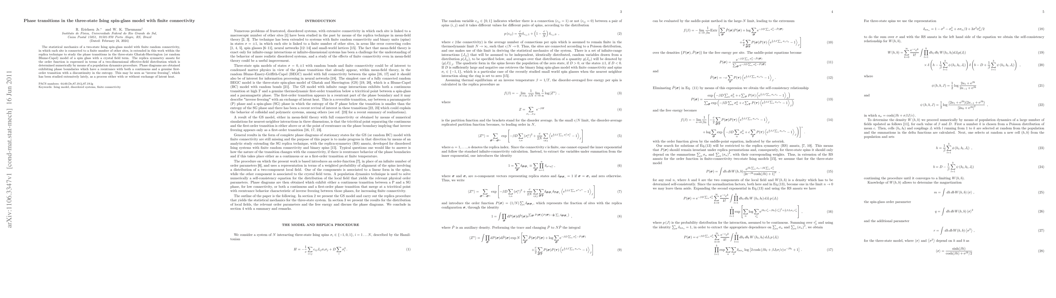 This paper extends the replica technique to study phase transitions in a three-state Ising spin-glass model with finite connectivity, revealing complex phase boundaries including continuous and first-order transitions with entropy discontinuities, termed "inverse freezing." Numerical methods determine the effective-field distribution.