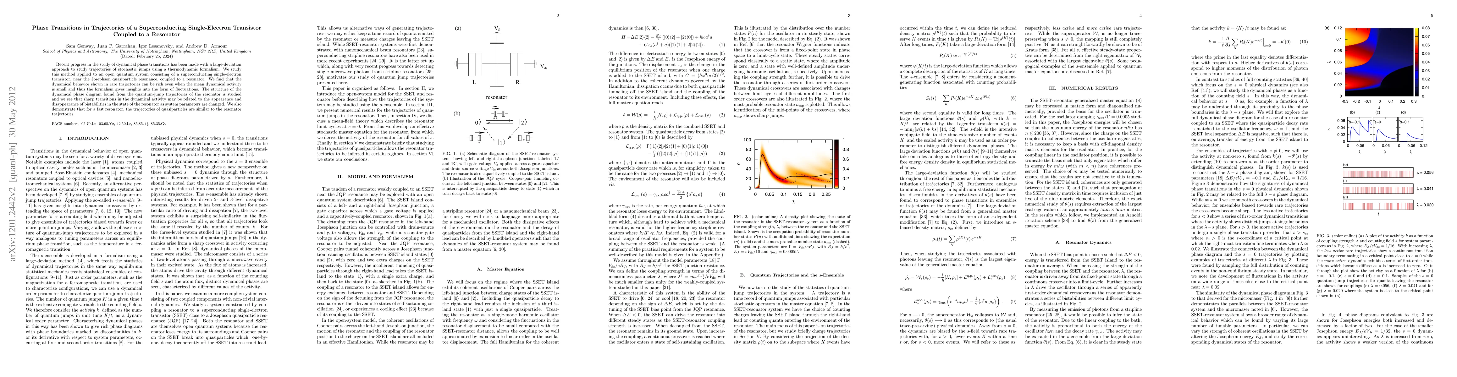 This paper investigates dynamical phase transitions in a superconducting single-electron transistor coupled to a resonator using a large-deviation approach. It reveals that rare trajectories exhibit complex dynamical behavior despite low mean activity, highlighting fluctuations and identifying sharp transitions linked to bistability changes in the resonator state.
