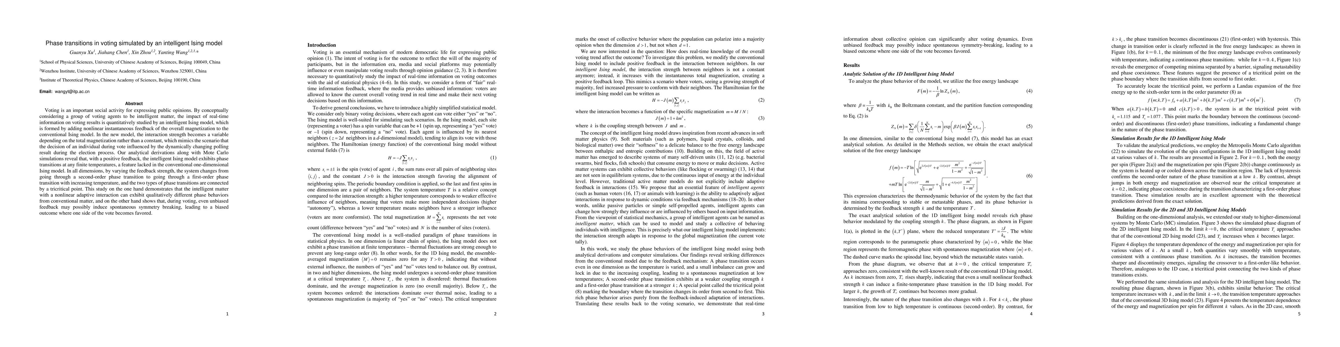Voting is an important social activity for expressing public opinions. By conceptually considering a group of voting agents to be intelligent matter, the impact of real-time information on voting results is quantitatively studied by an intelligent Ising model, which is formed by adding nonlinear instantaneous feedback of the overall magnetization to the conventional Ising model. In the new model, the interaction strength becomes a variable depending on the total magnetization rather than a constant, which mimics the scenario that the decision of an individual during vote influenced by the dynamically changing polling result during the election process. Our analytical derivations along with Mote Carlo simulations reveal that, with a positive feedback, the intelligent Ising model exhibits phase transitions at any finite temperatures, a feature lacked in the conventional one-dimensional Ising model. In all dimensions, by varying the feedback strength, the system changes from going through a second-order phase transition to going through a first-order phase transition with increasing temperature, and the two types of phase transitions are connected by a tricritical point. This study on the one hand demonstrates that the intelligent matter with a nonlinear adaptive interaction can exhibit qualitatively different phase behaviors from conventional matter, and on the other hand shows that, during voting, even unbiased feedback may possibly induce spontaneous symmetry breaking, leading to a biased outcome where one side of the vote becomes favored.