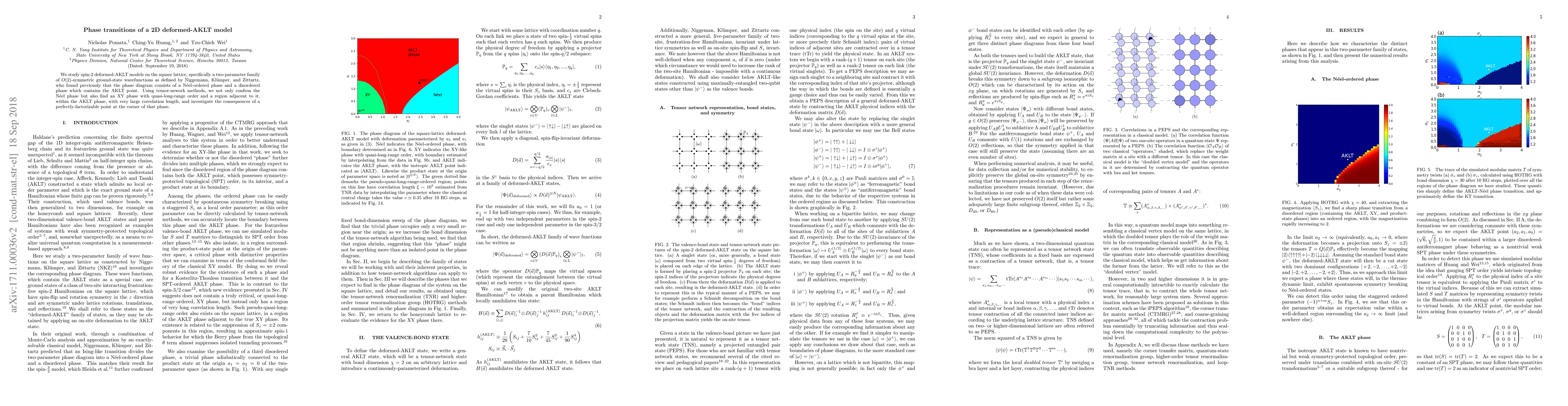 We study spin-2 deformed-AKLT models on the square lattice, specifically a two-parameter family of $O(2)$-symmetric ground-state wavefunctions as defined by Niggemann, Kl\"umper, and Zittartz, who found previously that the phase diagram consists of a N\'eel-ordered phase and a disordered phase which contains the AKLT point. Using tensor-network methods, we not only confirm the N\'eel phase but also find an XY phase with quasi-long-range order and a region adjacent to it, within the AKLT phase, with very large correlation length, and investigate the consequences of a perfectly factorizable point at the corner of that phase.