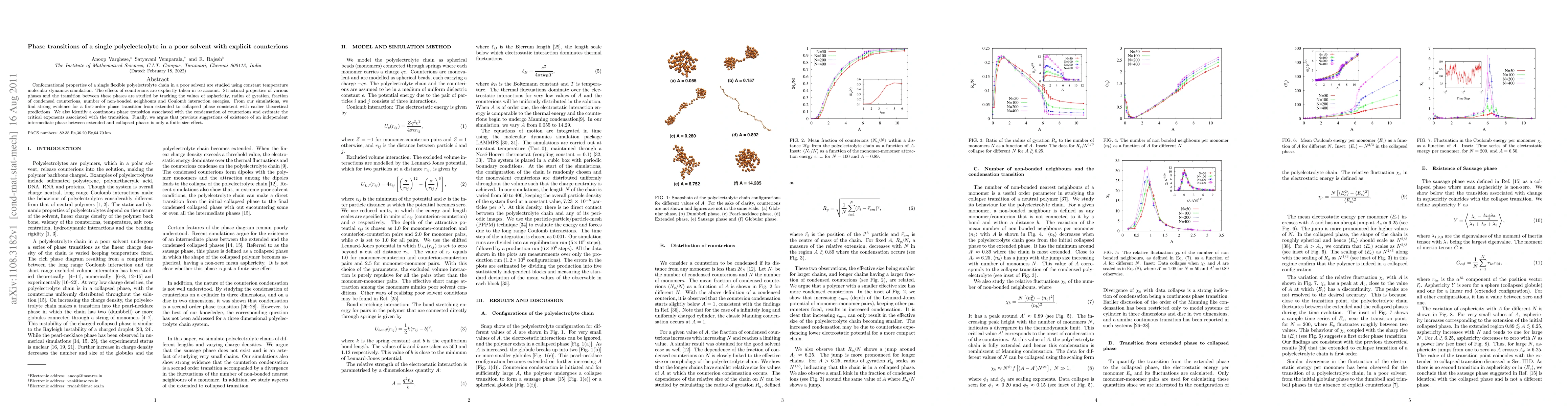 This study uses molecular dynamics simulations to investigate the conformational behavior of a single polyelectrolyte in a poor solvent, explicitly considering counterions. The research identifies a first-order phase transition from extended to collapsed phase and a continuous phase transition linked to counterion condensation, with critical exponents estimated. It concludes that previous claims of an intermediate phase are likely finite size effects.