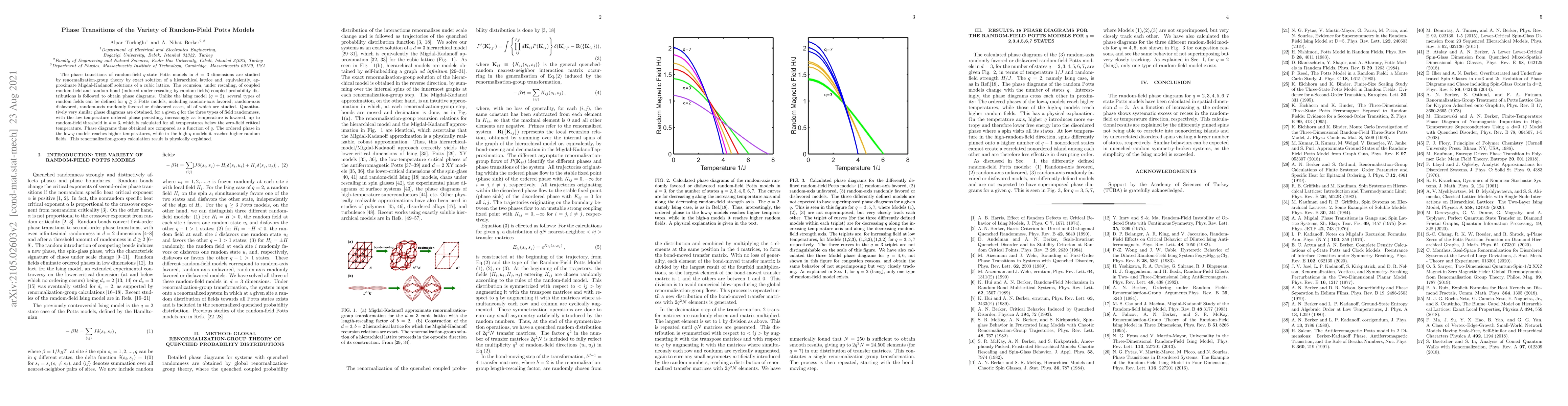 This paper studies phase transitions in random-field q-state Potts models using renormalization-group theory and exact solutions, revealing similar phase diagrams for different types of random fields. The ordered phase persists up to a calculated random-field threshold in 3D, with its temperature range varying with the model's q value.