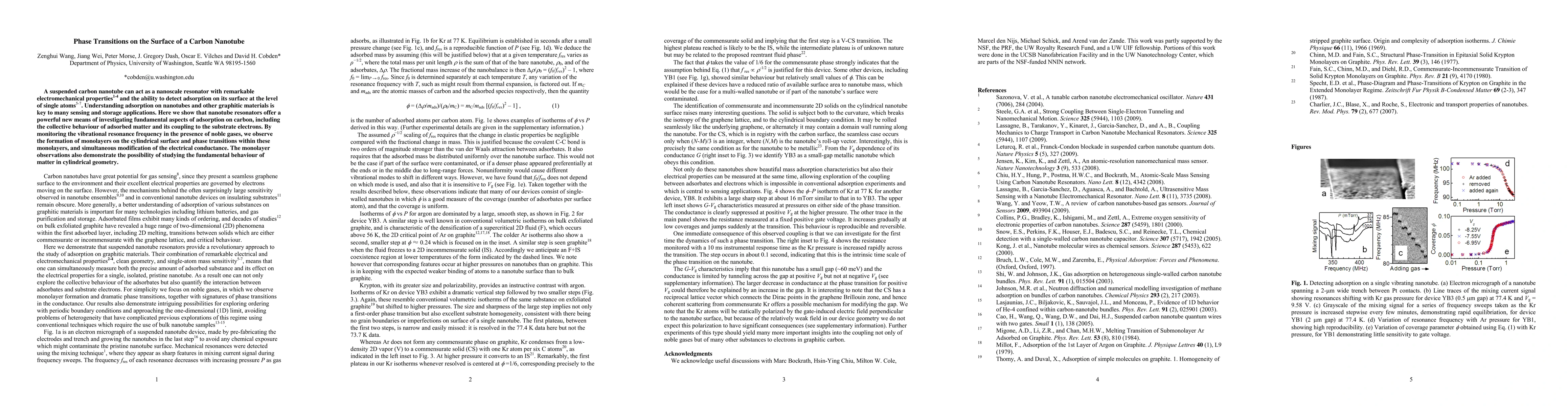 This paper investigates the adsorption behavior of noble gases on the surface of a suspended carbon nanotube resonator, revealing phase transitions in monolayers and their impact on electrical conductance, highlighting the nanotube's potential for studying fundamental properties of matter in cylindrical geometries.