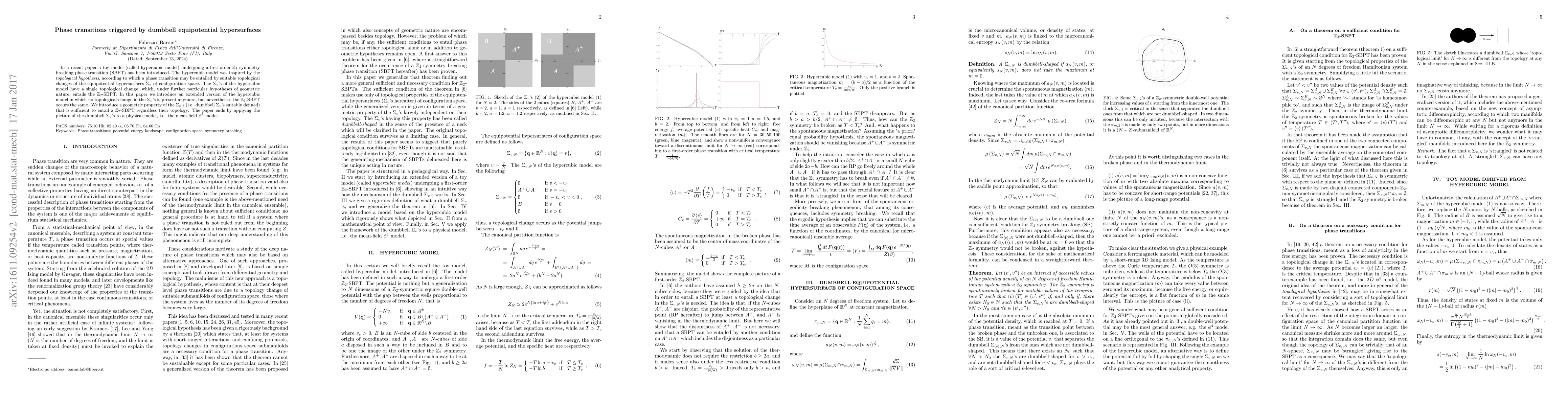 In a recent paper a toy model (called hypercubic model) undergoing a first-order $\mathbb{Z}_2$ symmetry breaking phase transition (SBPT) has been introduced. The hypercubic model was inspired by the \emph{topological hypothesis}, according to which a phase transition may be entailed by suitable topological changes of the equipotential hypersurfaces $\Sigma_v$ of configuration space. The $\Sigma_v$'s of the hypercubic model have a single topological change, which, under further particular hypotheses of geometric nature, entails the $\mathbb{Z}_2$-SBPT. In this paper we introduce an extended version of the hypercubic model in which no topological change in the $\Sigma_v$'s is present anymore, but nevertheless the $\mathbb{Z}_2$-SBPT occurs the same. We introduce a geometric property of the $\Sigma_v$'s (i.e. dumbbell $\Sigma_v$'s suitably defined) that is sufficient to entail a $\mathbb{Z}_2$-SBPT regardless their topology. The paper ends by applying the picture of the dumbbell $\Sigma_v$'s to a physical model, i.e. the mean-field $\phi^4$ model.