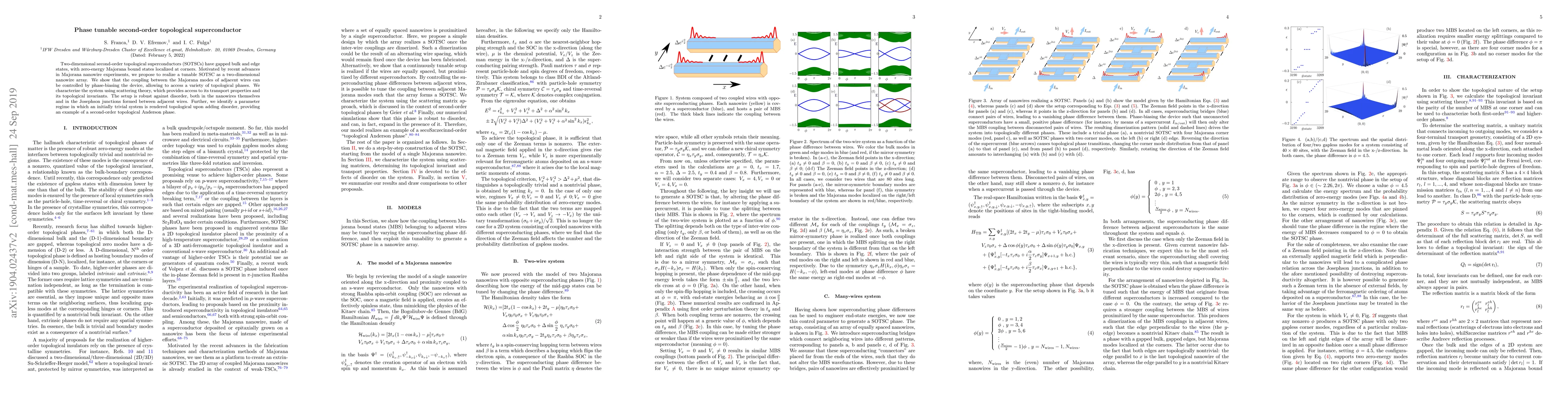 This research proposes a tunable two-dimensional second-order topological superconductor using a nanowire array, allowing control of Majorana modes via phase-biasing. The system is robust against disorder and can exhibit a second-order topological Anderson phase, with topological properties characterized by scattering theory.