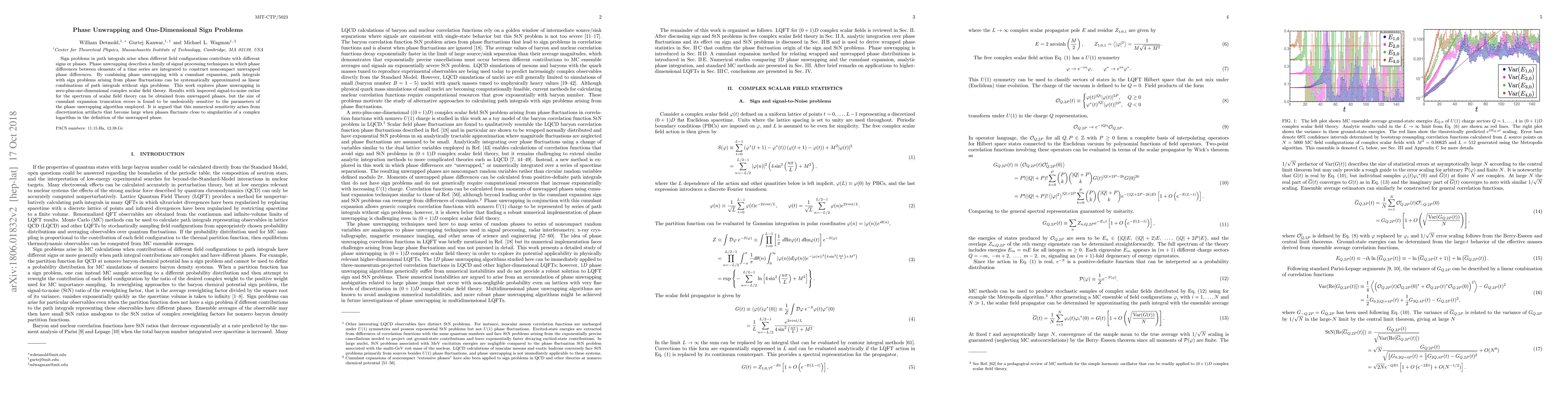 Researchers develop a method to address phase problems in path integrals by combining phase unwrapping with a cumulant expansion, improving signal-to-noise ratios for scalar field theory spectra.