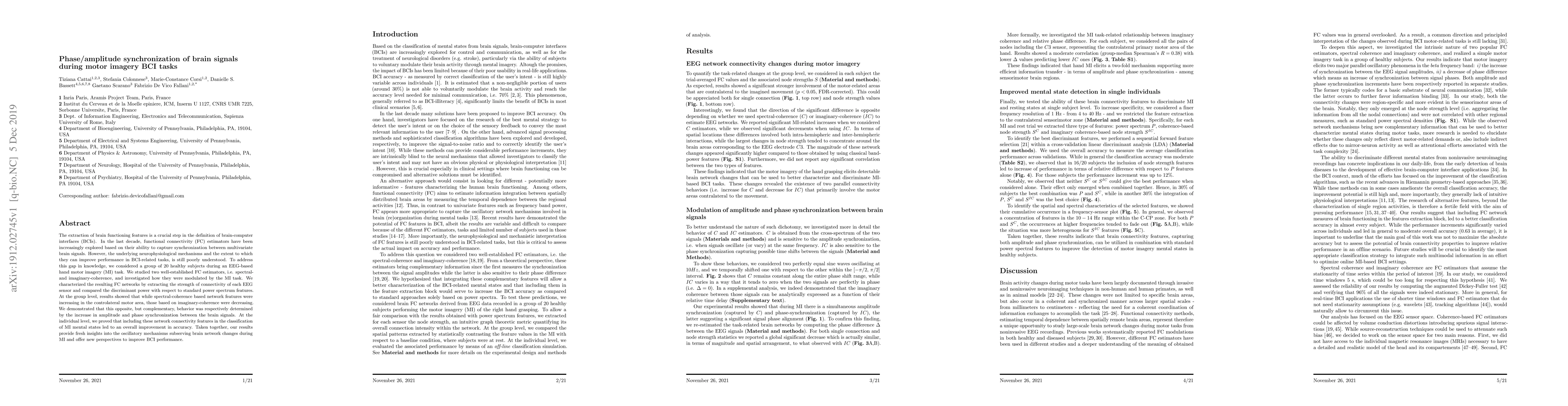 This study investigates brain signal synchronization during EEG-based motor imagery tasks using spectral- and imaginary-coherence estimators. It found that these estimators capture complementary changes in amplitude and phase synchronization, respectively, enhancing BCI classification accuracy.