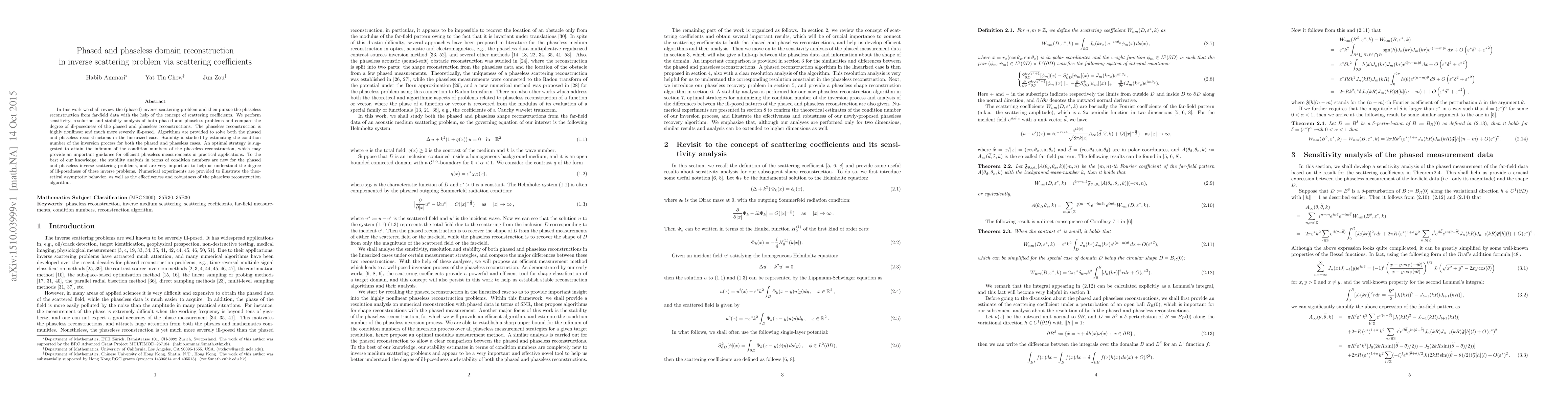 This paper reviews the inverse scattering problem, focusing on both phased and phaseless reconstructions using scattering coefficients. It analyzes the stability and ill-posedness of both methods, providing algorithms for linearized cases and suggesting an optimal strategy to minimize the condition number for phaseless reconstructions, which is crucial for practical applications.