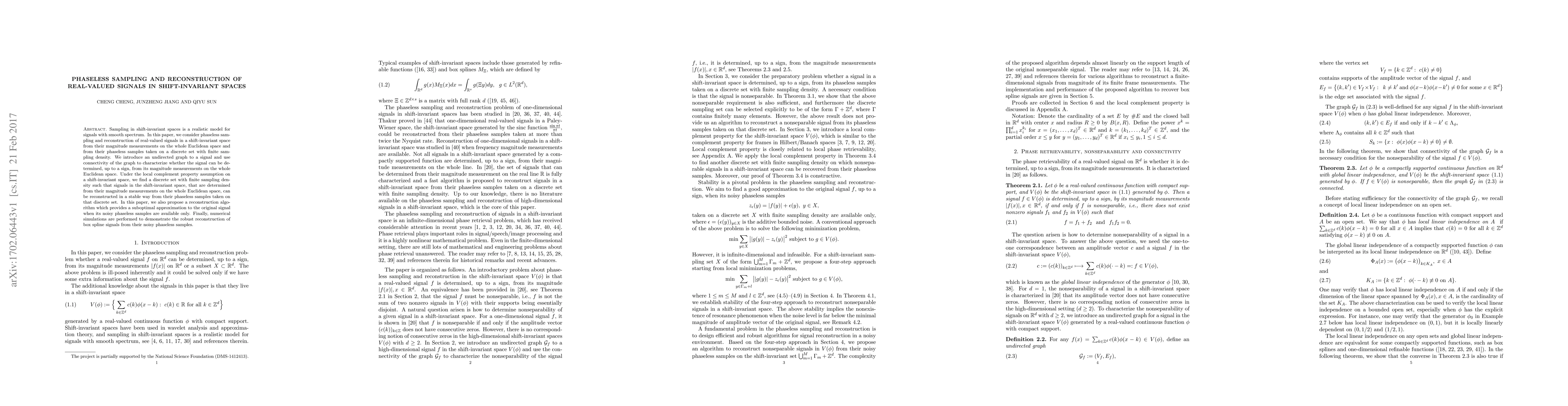 This paper explores phaseless sampling and reconstruction of real-valued signals in shift-invariant spaces using magnitude measurements and a reconstruction algorithm. It introduces a method to determine signal recoverability based on graph connectivity and proposes a stable reconstruction technique for signals determined from their full-space magnitude measurements.