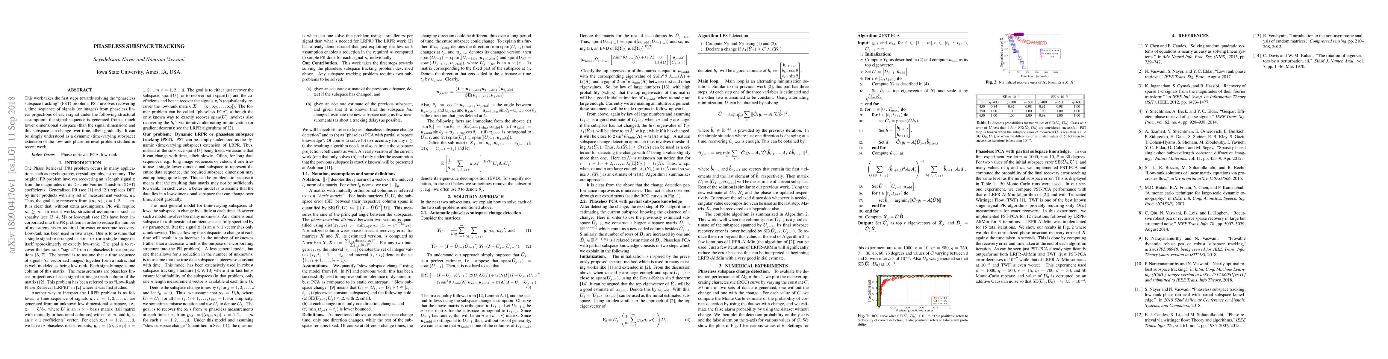 This work takes the first steps towards solving the "phaseless subspace tracking" (PST) problem. PST involves recovering a time sequence of signals (or images) from phaseless linear projections of each signal under the following structural assumption: the signal sequence is generated from a much lower dimensional subspace (than the signal dimension) and this subspace can change over time, albeit gradually. It can be simply understood as a dynamic (time-varying subspace) extension of the low-rank phase retrieval problem studied in recent work.