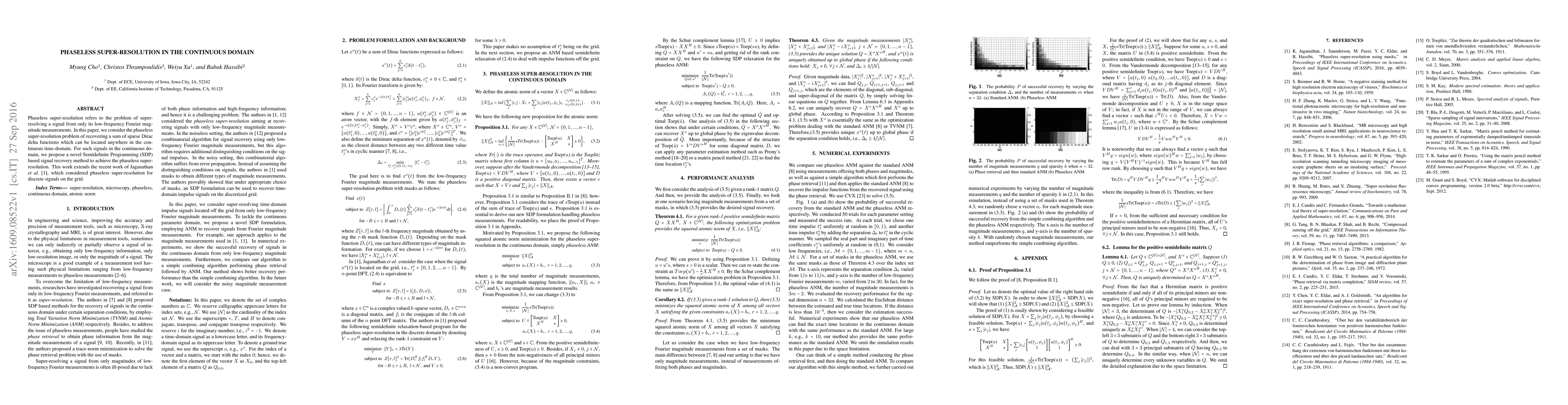 This paper proposes a Semidefinite Programming (SDP) method for phaseless super-resolution in continuous signals, aiming to recover sparse Dirac delta functions from their low-frequency Fourier magnitude measurements. This extends previous work on discrete signals to the continuous domain.