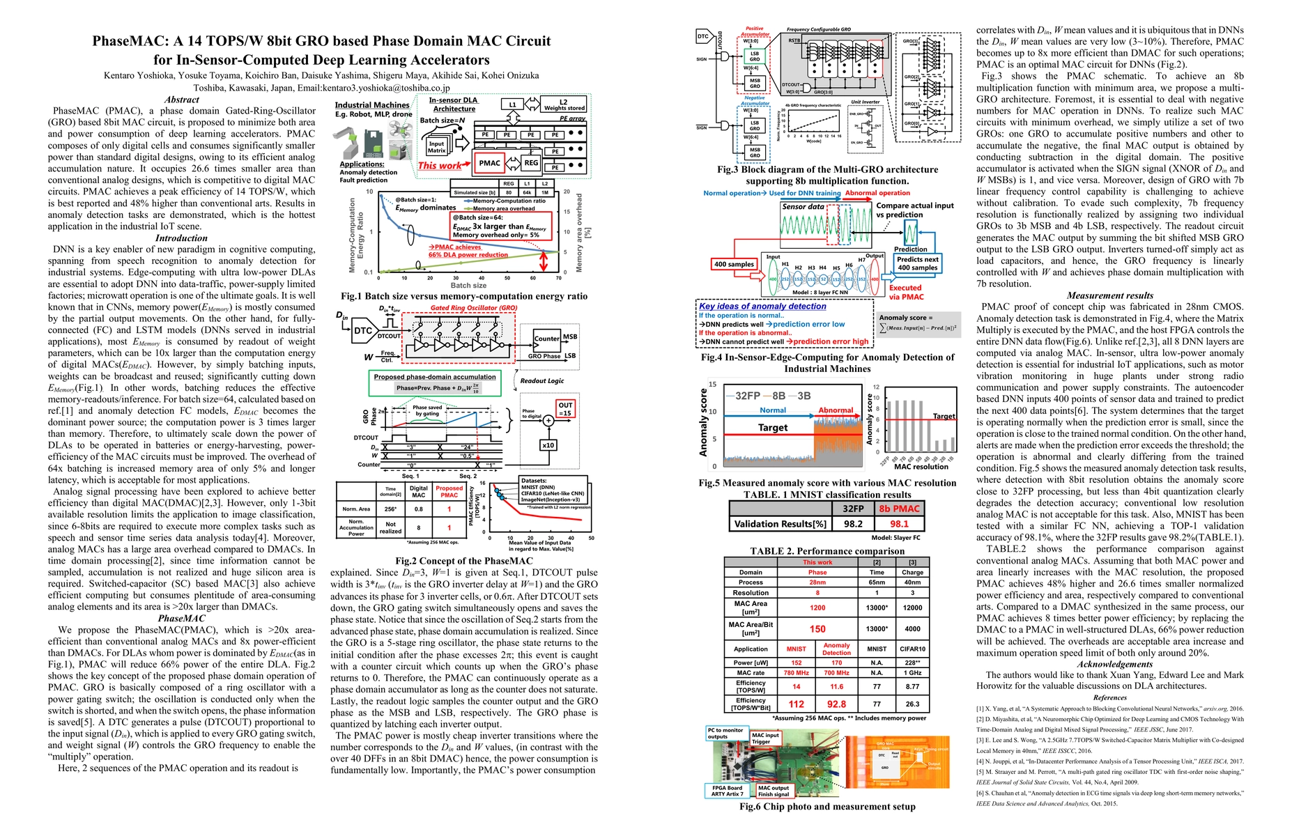 PhaseMAC (PMAC), a phase domain Gated-Ring-Oscillator (GRO) based 8bit MAC circuit, is proposed to minimize both area and power consumption of deep learning accelerators. PMAC composes of only digital cells and consumes significantly smaller power than standard digital designs, owing to its efficient analog accumulation nature. It occupies 26.6 times smaller area than conventional analog designs, which is competitive to digital MAC circuits. PMAC achieves a peak efficiency of 14 TOPS/W, which is best reported and 48% higher than conventional arts. Results in anomaly detection tasks are demonstrated, which is the hottest application in the industrial IoT scene.