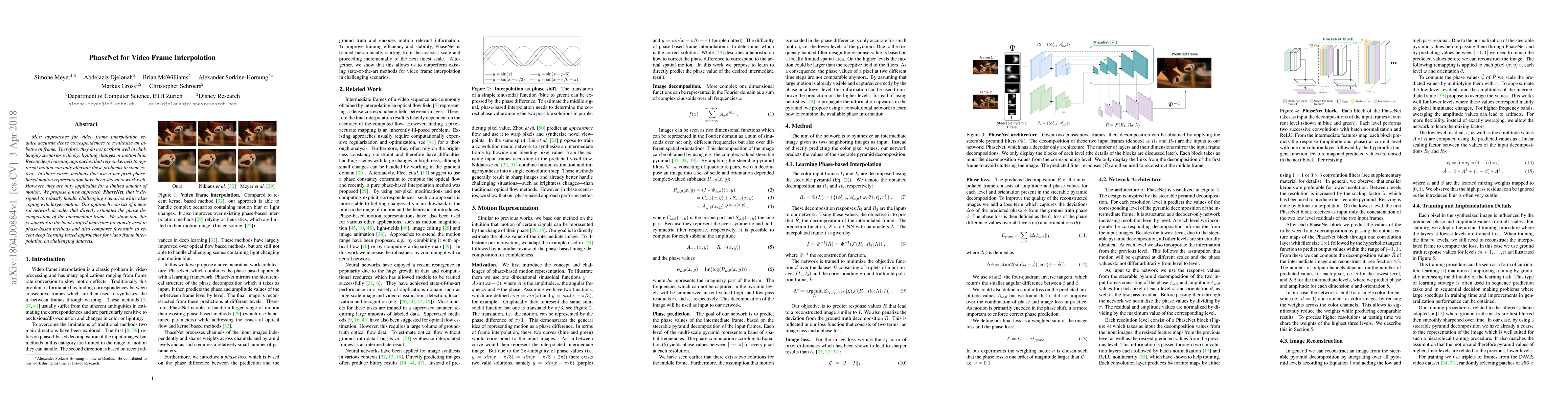 PhaseNet is a novel neural network approach for video frame interpolation that robustly estimates phase decompositions to handle challenging scenarios with significant lighting changes and motion blur, outperforming previous deep learning and heuristic methods.