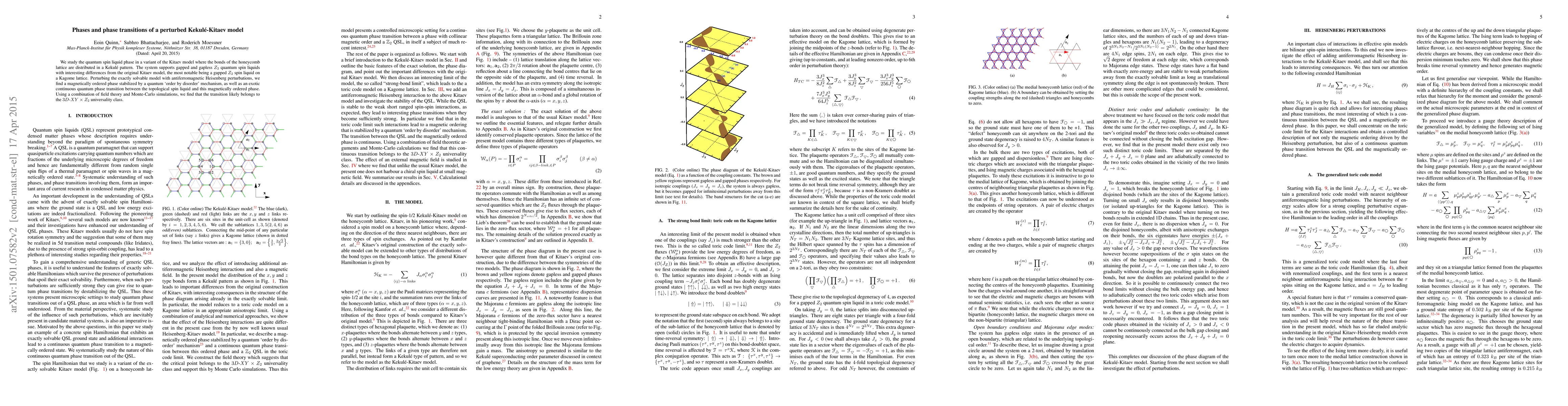This research explores a modified Kitaev model with Kekulé patterned bonds, revealing gapped and gapless Z_2 quantum spin liquids, including a gapped Z_2 SL on a Kagome lattice. Perturbations with Heisenberg interactions stabilize a magnetically ordered phase via quantum 'order by disorder', with a continuous phase transition to this phase, likely belonging to the 3D-XYxZ_2 universality class, as per field theory and Monte-Carlo simulations.