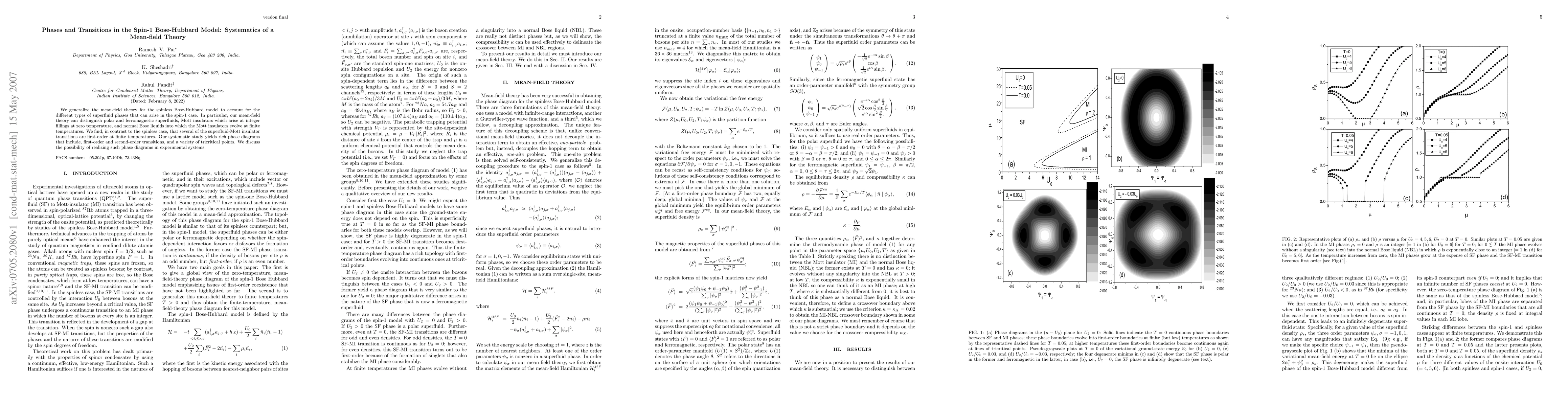 We generalize the mean-field theory for the spinless Bose-Hubbard model to account for the different types of superfluid phases that can arise in the spin-1 case. In particular, our mean-field theory can distinguish polar and ferromagnetic superfluids, Mott insulators which arise at integer fillings at zero temperature, and normal Bose liquids into which the Mott insulators evolve at finite temperatures. We find, in contrast to the spinless case, that several of the superfluid-Mott insulator transitions are first-order at finite temperatures. Our systematic study yields rich phase diagrams that include, first-order and second-order transitions, and a variety of tricritical points. We discuss the possibility of realizing such phase diagrams in experimental systems.