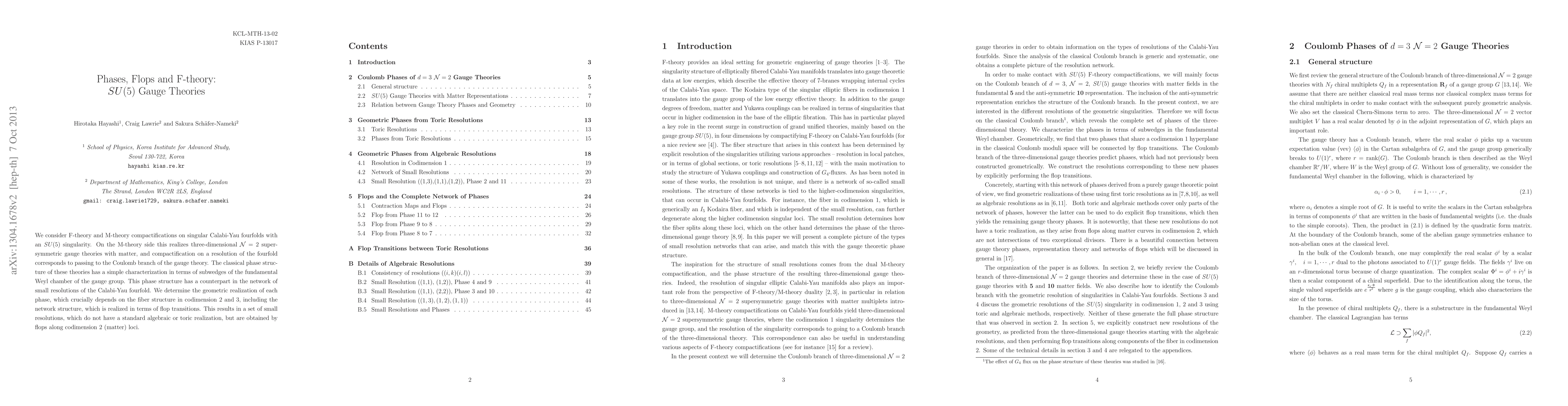 We consider F-theory and M-theory compactifications on singular Calabi-Yau fourfolds with an SU(5) singularity. On the M-theory side this realizes three-dimensional N=2 supersymmetric gauge theories with matter, and compactification on a resolution of the fourfold corresponds to passing to the Coulomb branch of the gauge theory. The classical phase structure of these theories has a simple characterization in terms of subwedges of the fundamental Weyl chamber of the gauge group. This phase structure has a counterpart in the network of small resolutions of the Calabi-Yau fourfold. We determine the geometric realization of each phase, which crucially depends on the fiber structure in codimension 2 and 3, including the network structure, which is realized in terms of flop transitions. This results in a set of small resolutions, which do not have a standard algebraic or toric realization, but are obtained by flops along codimension 2 (matter) loci.