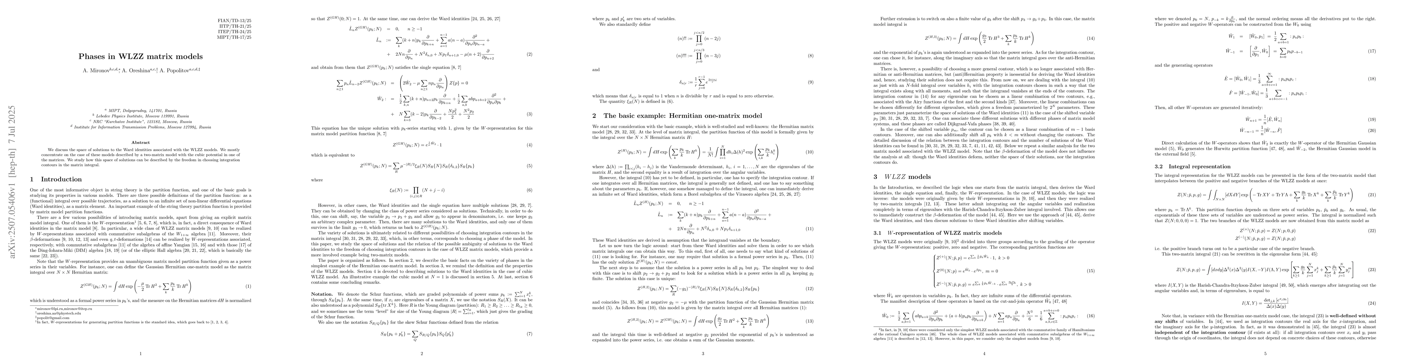 We discuss the space of solutions to the Ward identities associated with the WLZZ models. We mostly concentrate on the case of these models described by a two-matrix model with the cubic potential in one of the matrices. We study how this space of solutions can be described by the freedom in choosing integration contours in the matrix integral.