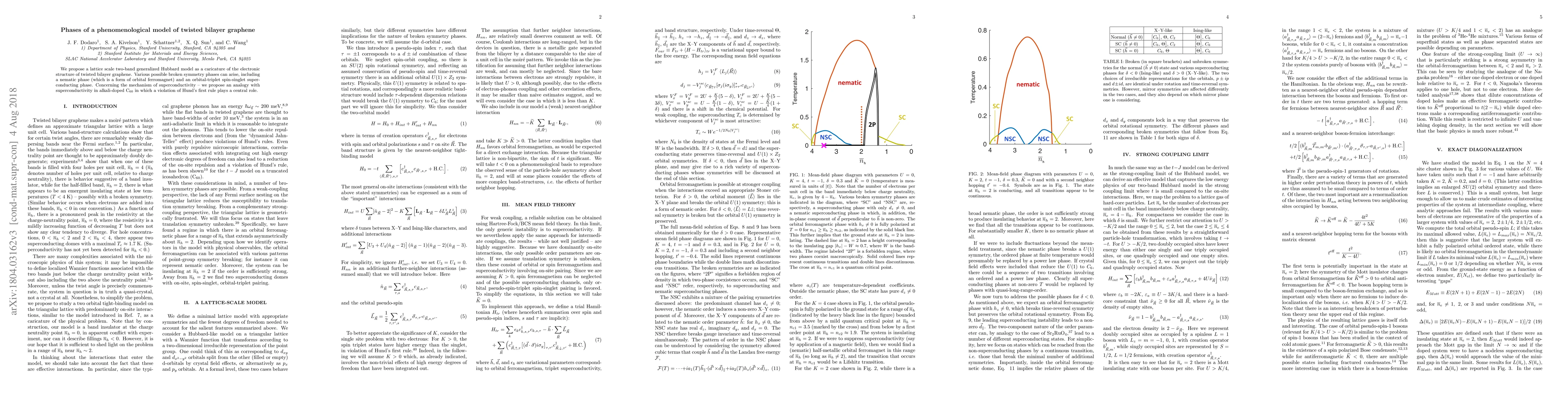 We propose a lattice scale two-band generalized Hubbard model as a caricature of the electronic structure of twisted bilayer graphene. Various possible broken symmetry phases can arise, including a nematic phase (which is a form of orbital ferromagnet) and an orbital-triplet spin-singlet superconducting phase. Concerning the mechanism of superconductivity -- we propose an analogy with superconductivity in alkali-doped C$_{60}$ in which a violation of Hund's first rule plays a central role.