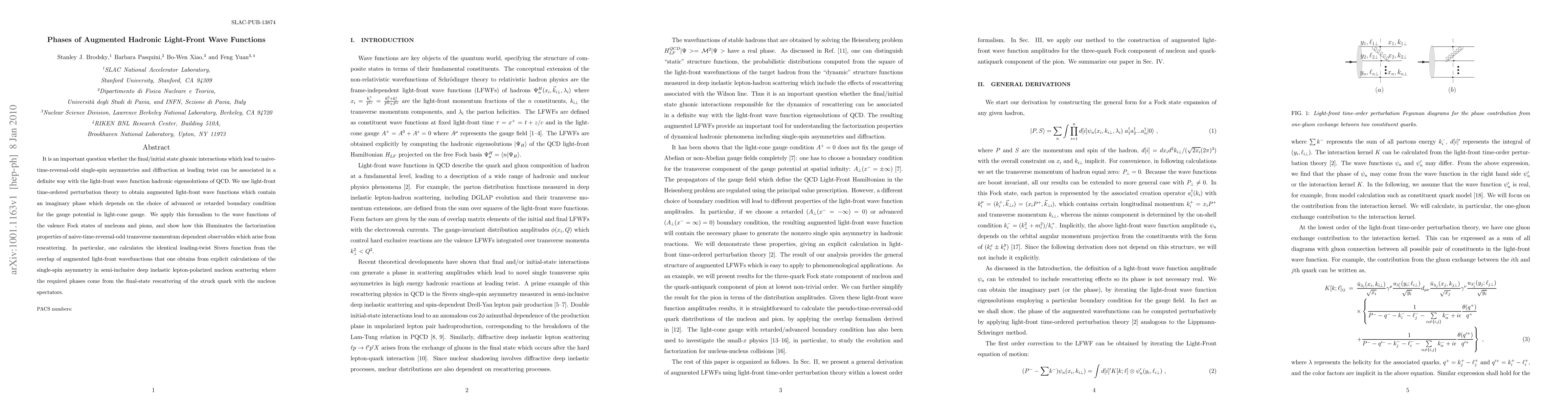 It is an important question whether the final/initial state gluonic interactions which lead to naive-time-reversal-odd single-spin asymmetries and diffraction at leading twist can be associated in a definite way with the light-front wave function hadronic eigensolutions of QCD. We use light-front time-ordered perturbation theory to obtain augmented light-front wave functions which contain an imaginary phase which depends on the choice of advanced or retarded boundary condition for the gauge potential in light-cone gauge. We apply this formalism to the wave functions of the valence Fock states of nucleons and pions, and show how this illuminates the factorization properties of naive-time-reversal-odd transverse momentum dependent observables which arise from rescattering. In particular, one calculates the identical leading-twist Sivers function from the overlap of augmented light-front wavefunctions that one obtains from explicit calculations of the single-spin asymmetry in semi-inclusive deep inelastic lepton-polarized nucleon scattering where the required phases come from the final-state rescattering of the struck quark with the nucleon spectators.