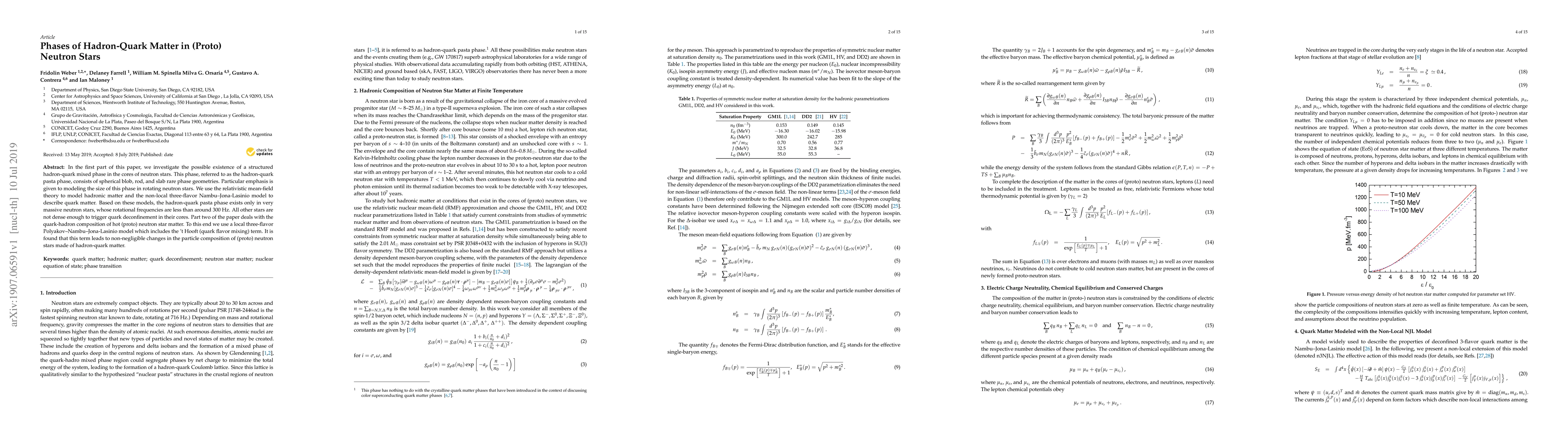 In the first part of this paper, we investigate the possible existence of a structured hadron-quark mixed phase in the cores of neutron stars. This phase, referred to as the hadron-quark pasta phase, consists of spherical blob, rod, and slab rare phase geometries. Particular emphasis is given to modeling the size othis phase in rotating neutron stars. We use the relativistic mean-field theory to model hadronic matter and the non-local three-flavor Nambu-Jona-Lasinio model to describe quark matter. Based on these models, the hadron-quark pasta phase exists only in very massive neutron stars, whose rotational frequencies are less than around 300 Hz. All other stars are not dense enough to trigger quark deconfinement in their cores. Part two of the paper deals with the quark-hadron composition of hot (proto) neutron star matter. To this end we use a local three-flavor Polyakov-Nambu-Jona-Lasinio model which includes the 't Hooft (quark flavor mixing) term. It is found that this term leads to non-negligible changes in the particle composition of (proto) neutron stars made of hadron-quark matter.