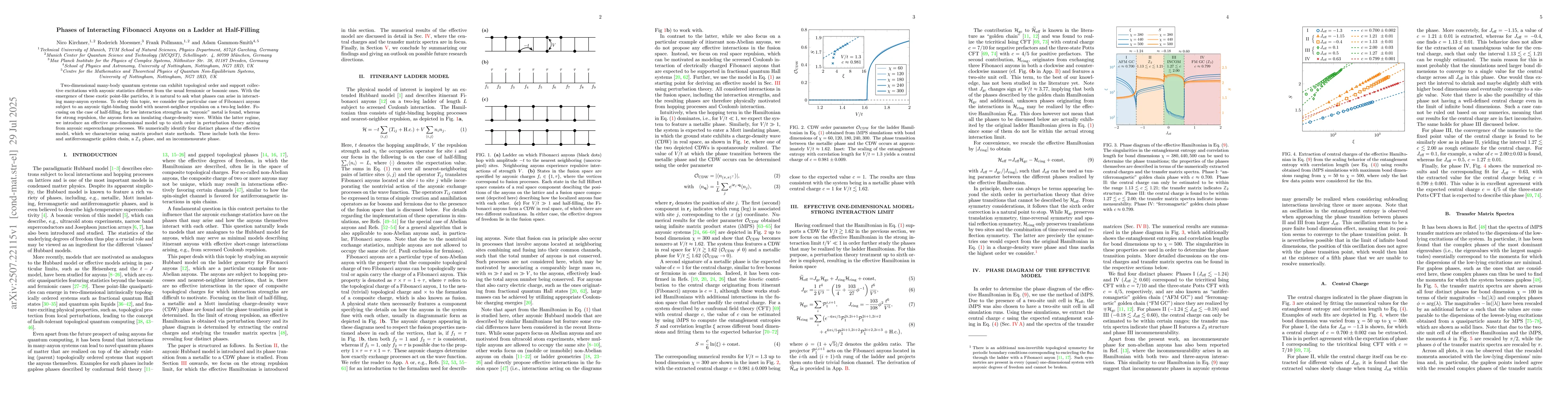 This work introduces a comprehensive analysis of interacting Fibonacci anyons on a ladder at half-filling, identifying new phases not previously reported in the literature.
