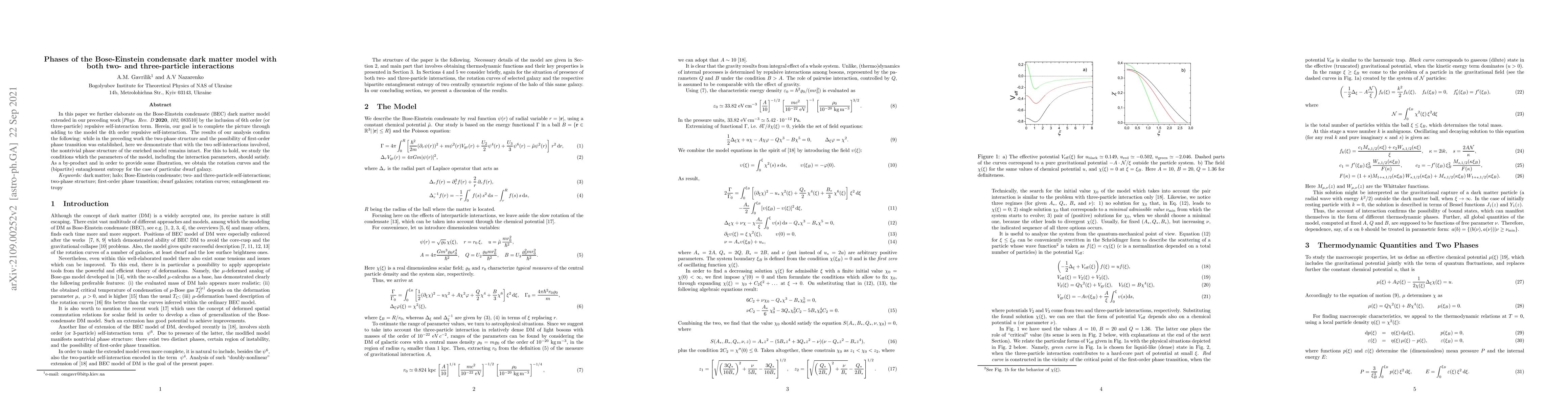 In this paper we further elaborate on the Bose-Einstein condensate (BEC) dark matter model extended in our preceding work [Phys. Rev. D 102, 083510 (2020)] by the inclusion of 6th order (or three-particle) repulsive self-interaction term. Herein, our goal is to complete the picture through adding to the model the 4th order repulsive self-interaction. The results of our analysis confirm the following: while in the preceding work the two-phase structure and the possibility of first-order phase transition was established, here we demonstrate that with the two self-interactions involved, the nontrivial phase structure of the enriched model remains intact. For this to hold, we study the conditions which the parameters of the model, including the interaction parameters, should satisfy. As a by-product and in order to provide some illustration, we obtain the rotation curves and the (bipartite) entanglement entropy for the case of particular dwarf galaxy.