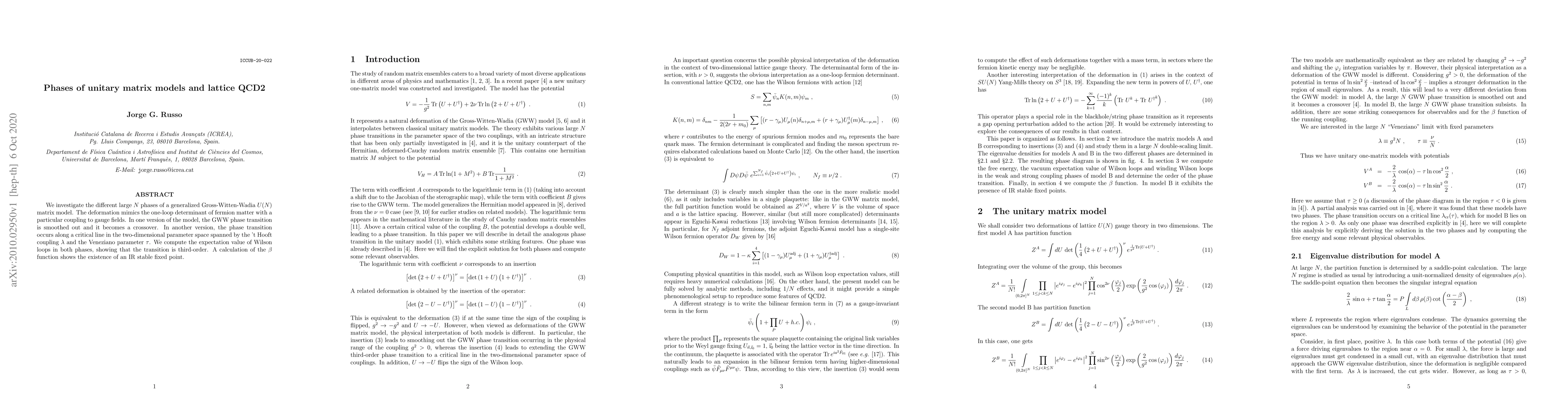 We investigate the different large $N$ phases of a generalized Gross-Witten-Wadia $U(N)$ matrix model. The deformation mimics the one-loop determinant of fermion matter with a particular coupling to gauge fields. In one version of the model, the GWW phase transition is smoothed out and it becomes a crossover. In another version, the phase transition occurs along a critical line in the two-dimensional parameter space spanned by the 't~Hooft coupling $\lambda$ and the Veneziano parameter $\tau$. We compute the expectation value of Wilson loops in both phases, showing that the transition is third-order. A calculation of the $\beta $ function shows the existence of an IR stable fixed point.