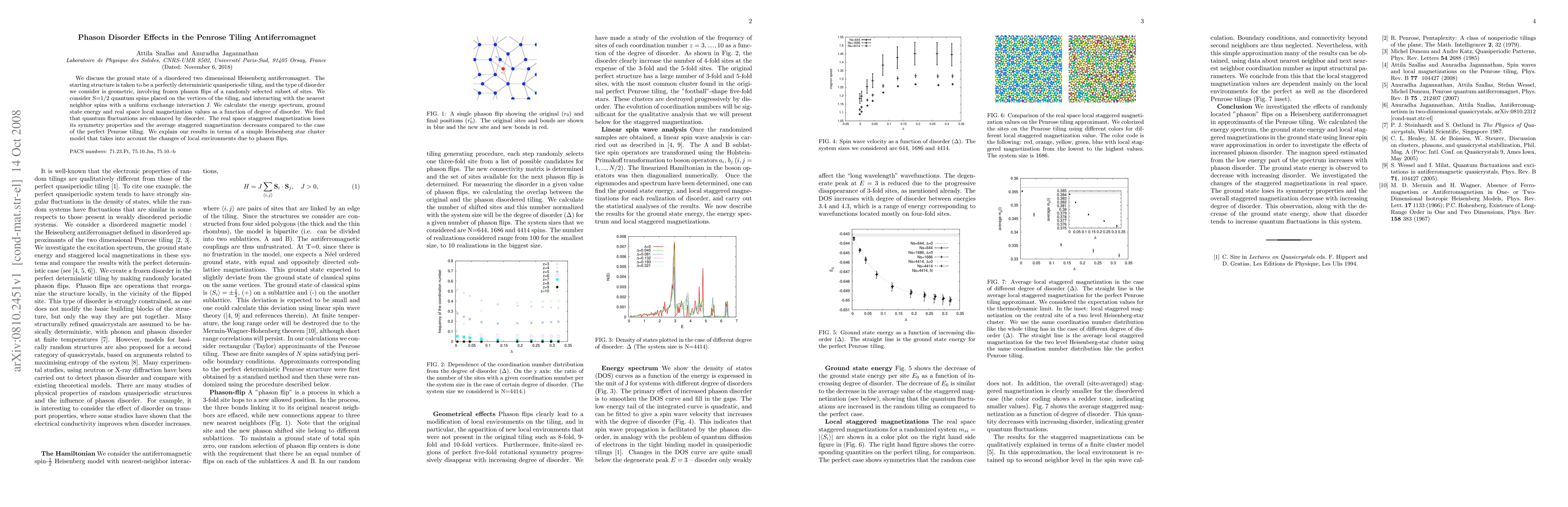 We discuss the ground state of a disordered two dimensional Heisenberg antiferromagnet. The starting structure is taken to be a perfectly deterministic quasiperiodic tiling, and the type of disorder we consider is geometric, involving frozen phason flips of a randomly selected subset of sites. We consider S=1/2 quantum spins placed on the vertices of the tiling, and interacting with the nearest neighbor spins with a uniform exchange interaction J. We calculate the energy spectrum, ground state energy and real space local magnetization values as a function of degree of disorder. We find that quantum fluctuations are enhanced by disorder. The real space staggered magnetization loses its symmetry properties and the average staggered magnetization decreases compared to the case of the perfect Penrose tiling. We explain our results in terms of a simple Heisenberg star cluster model that takes into account the changes of local environments due to phason flips.