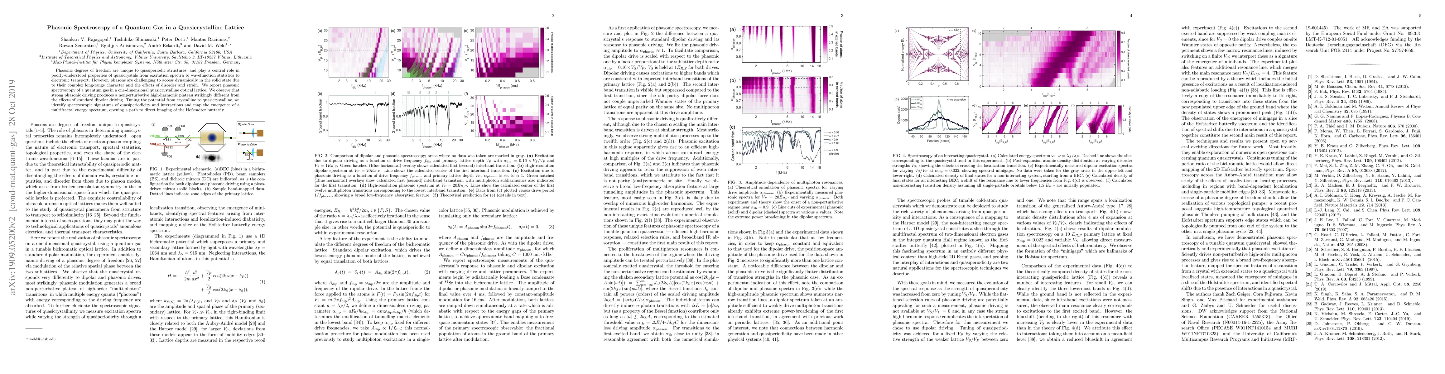 Phasonic degrees of freedom are unique to quasiperiodic structures, and play a central role in poorly-understood properties of quasicrystals from excitation spectra to wavefunction statistics to electronic transport. However, phasons are challenging to access dynamically in the solid state due to their complex long-range character and the effects of disorder and strain. We report phasonic spectroscopy of a quantum gas in a one-dimensional quasicrystalline optical lattice. We observe that strong phasonic driving produces a nonperturbative high-harmonic plateau strikingly different from the effects of standard dipolar driving. Tuning the potential from crystalline to quasicrystalline, we identify spectroscopic signatures of quasiperiodicity and interactions and map the emergence of a multifractal energy spectrum, opening a path to direct imaging of the Hofstadter butterfly.