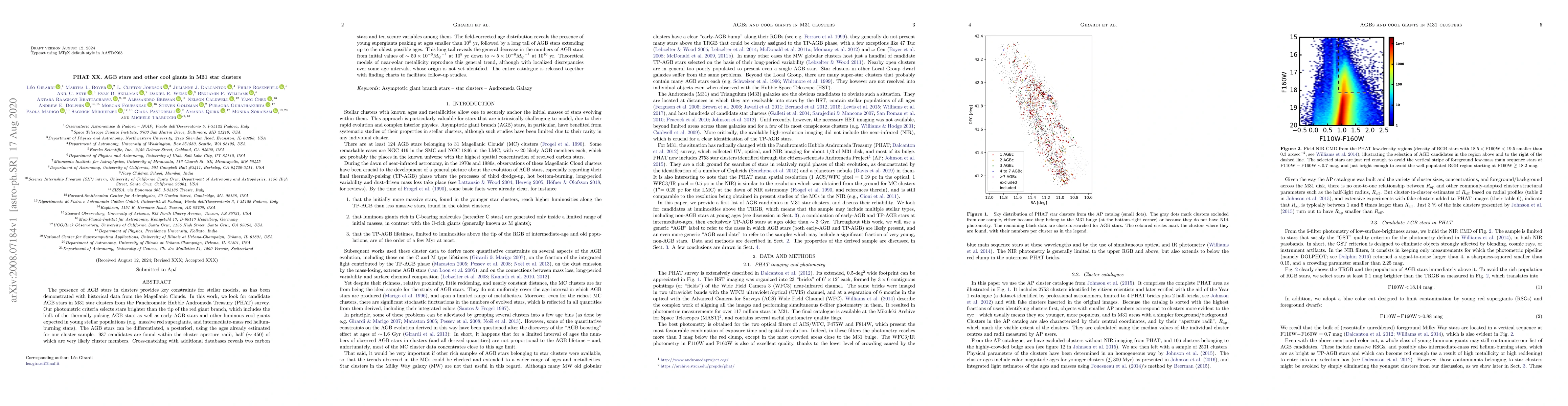 This study identifies candidate AGB stars in M31 star clusters using the PHAT survey, finding 937 candidates, 450 of which are likely cluster members. The analysis reveals a population of young supergiants and a long tail of AGB stars, showing a general decline in AGB star numbers over time, with theoretical models partially matching this trend.