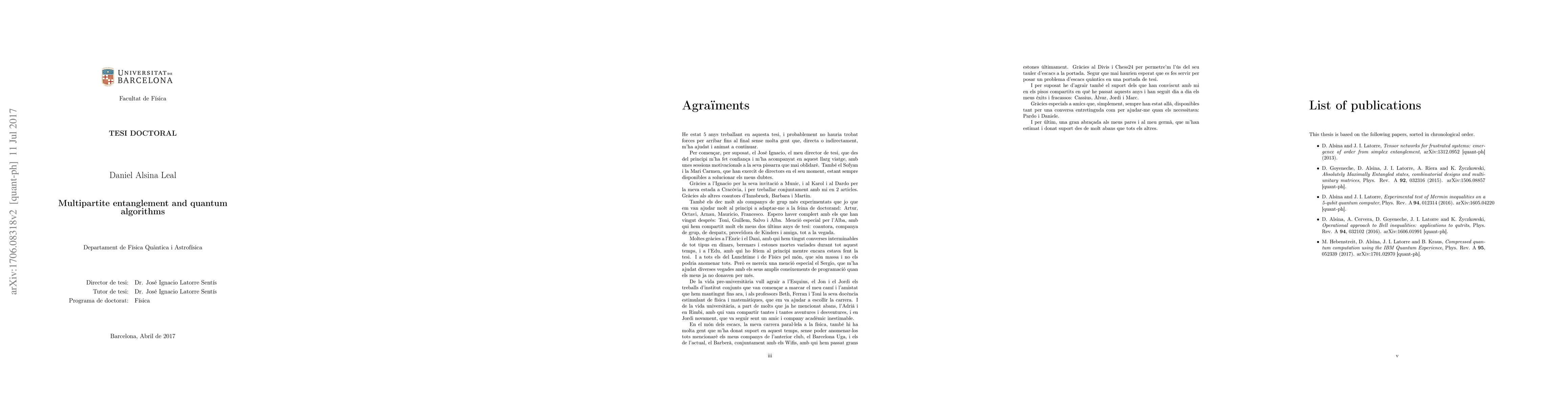 This PhD thesis explores multipartite entanglement, detailing entanglement measures, maximally entangled states, Bell inequalities, and quantum frustration. It also examines quantum algorithms executed on the IBM quantum computer, alongside those relevant to adiabatic quantum computation and quantum thermodynamics.