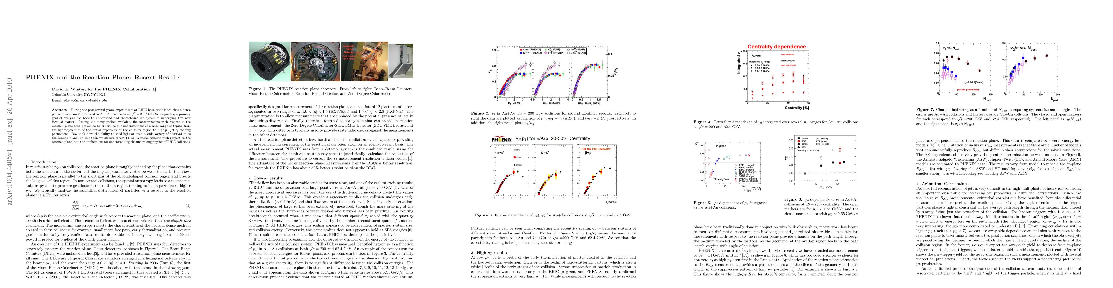 During the past several years, experiments at RHIC have established that a dense partonic medium is produced in Au+Au collisions at sqrt(s)=200 GeV. Subsequently, a primary goal of analysis has been to understand and characterize the dynamics underlying this new form of matter. Among the many probes available, the measurements with respect to the reaction plane has proven to be crucial to our understanding of a wide range of topics, from the hydrodynamics of the initial expansion of the collision region to high-pt jet quenching phenomena. Few tools have the ability to shed light on such a wide variety of observables as the reacion plane. In this article, we discuss recent PHENIX measurements with respect to the reaction plane, and the implications for understanding the underlying physics of RHIC collisions.