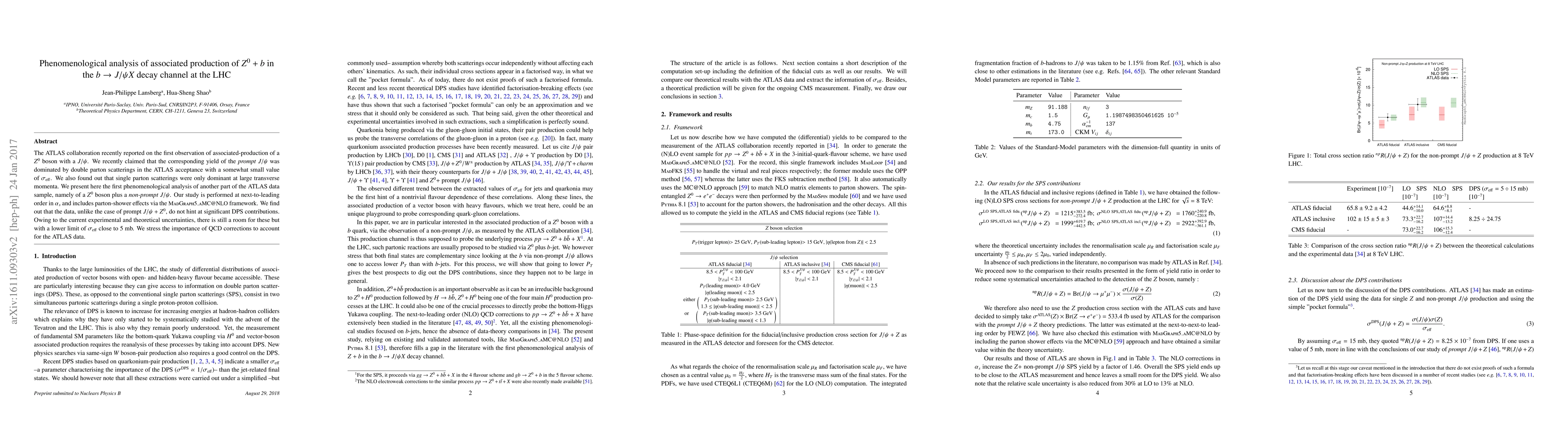This paper presents a phenomenological analysis of the associated production of $Z^0$ bosons with non-prompt $J/\psi$ mesons at the LHC, finding no significant evidence for double parton scatterings. The study emphasizes the necessity of QCD corrections to reconcile theoretical predictions with ATLAS data.