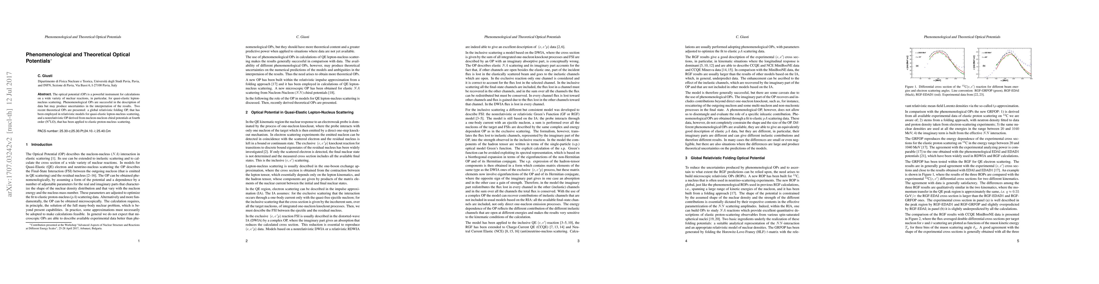 The optical potential is a powerful instrument for calculations on a wide variety of nuclear reactions, in particular, for quasi-elastic lepton-nucleus scattering. Phenomenological optical potentials are successful in the description of data but may produce uncertainties in the interpretation of the results. Two recent theoretical optical potentials are presented: a global relativistic folding optical potential, that has been employed in relativistic models for quasi-elastic lepton-nucleus scattering, and a non relativistic optical potential derived from nucleon-nucleon chiral potentials at fourth order (N4LO), that has been applied to elastic proton-nucleus scattering.