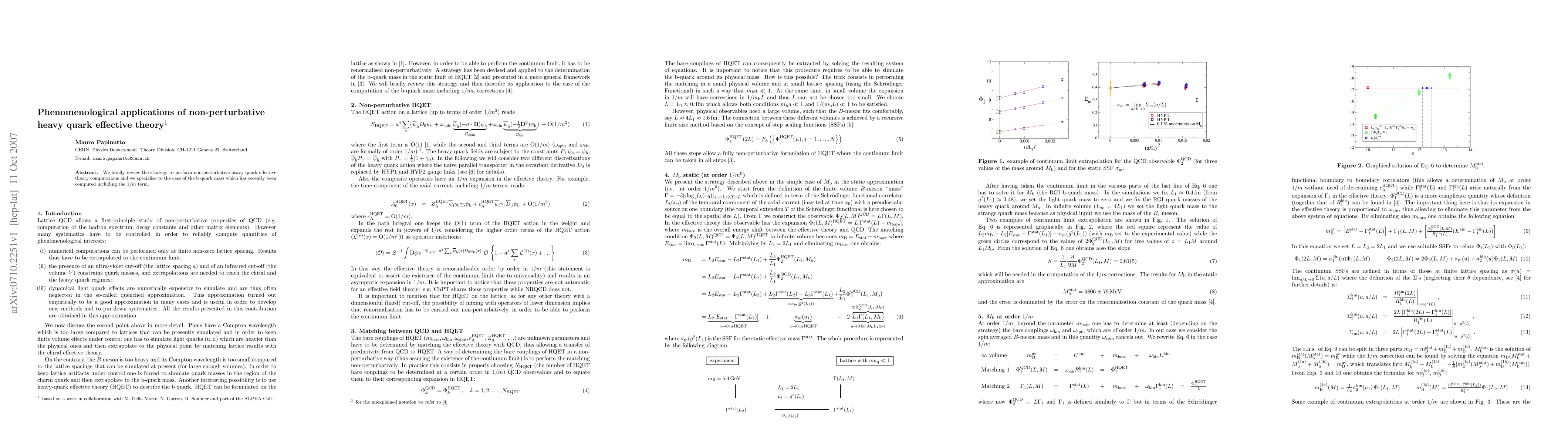 Summary: This paper reviews the methodology for non-perturbative computations using heavy quark effective theory, focusing on recent advancements in calculating the b quark mass, including the 1/m correction term.