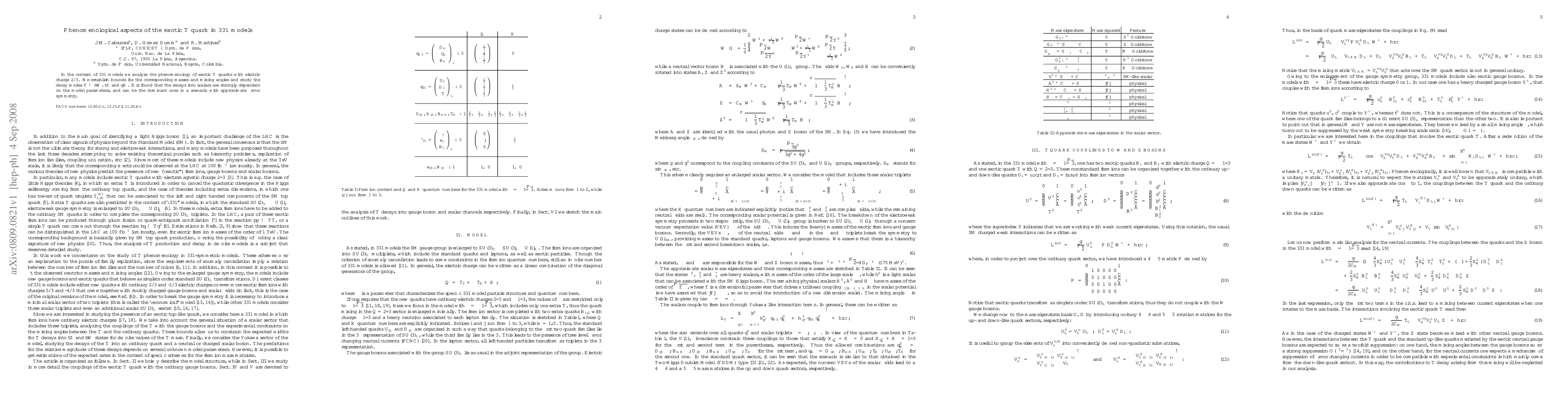 In the context of 331 models we analyze the phenomenology of exotic $T$ quarks with electric charge 2/3. We establish bounds for the corresponding masses and mixing angles and study the decay modes $T\to bW$, $tZ$ and $qH$. It is found that the decays into scalars are strongly dependent on the model parameters, and can be the dominant ones in a scenario with approximate flavor symmetry.