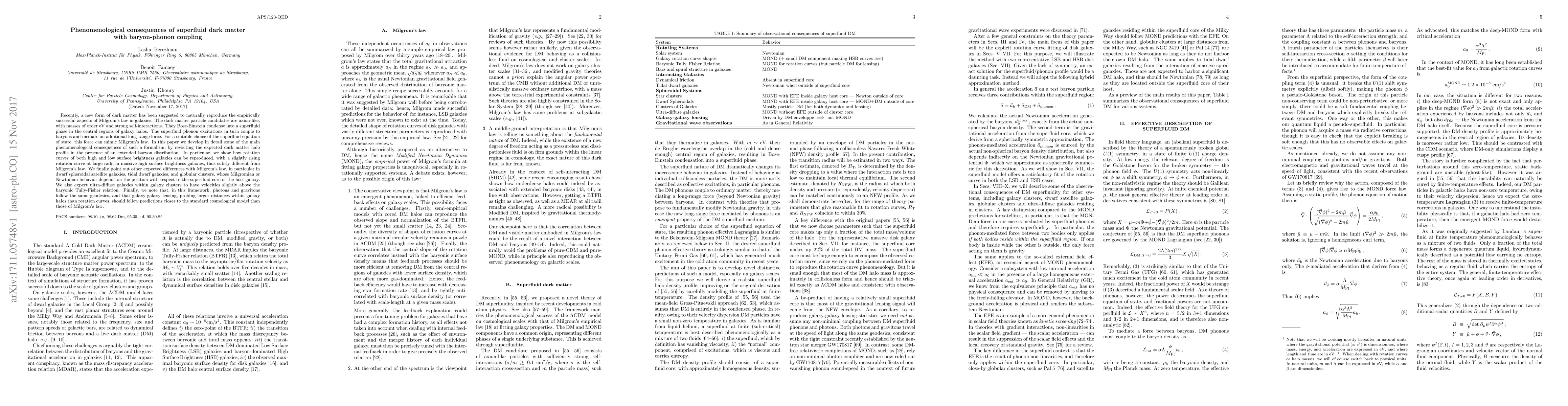 This paper explores the phenomenological consequences of superfluid dark matter with baryon-phonon coupling, showing how it can reproduce galaxy rotation curves and modify the behavior of various galactic structures. It highlights subtle differences from Milgrom's law and predicts deviations in the behavior of dwarf galaxies and ultra-diffuse galaxies.