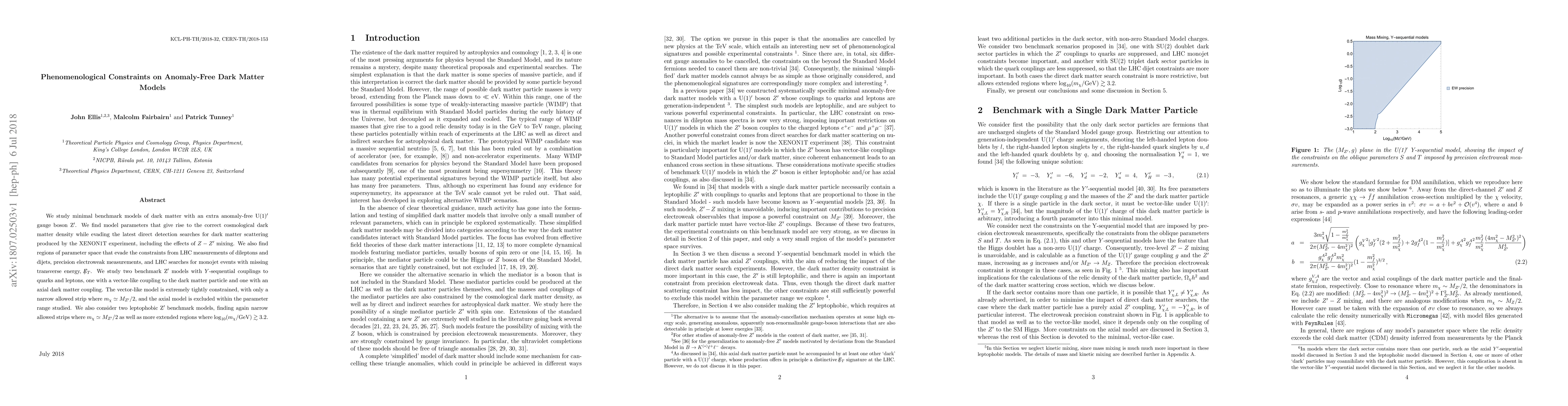 We study minimal benchmark models of dark matter with an extra anomaly-free U(1)' gauge boson Z'. We find model parameters that give rise to the correct cosmological dark matter density while evading the latest direct detection searches for dark matter scattering produced by the XENON1T experiment, including the effects of Z-Z' mixing. We also find regions of parameter space that evade the constraints from LHC measurements of dileptons and dijets, precision electroweak measurements, and LHC searches for monojet events with missing transverse energy. We study two benchmark Z' models with Y-sequential couplings to quarks and leptons, one with a vector-like coupling to the dark matter particle and one with an axial dark matter coupling. The vector-like model is extremely tightly constrained, with only a narrow allowed strip where $m_\chi \simeq M_{Z'}/2$, and the axial model is excluded within the parameter range studied. We also consider two leptophobic Z$^\prime$ benchmark models, finding again narrow allowed strips where $m_\chi \simeq M_{Z'}/2$ as well as more extended regions where $\log_{10} (m_\chi/ {\rm GeV}) \gtrsim 3.2$.