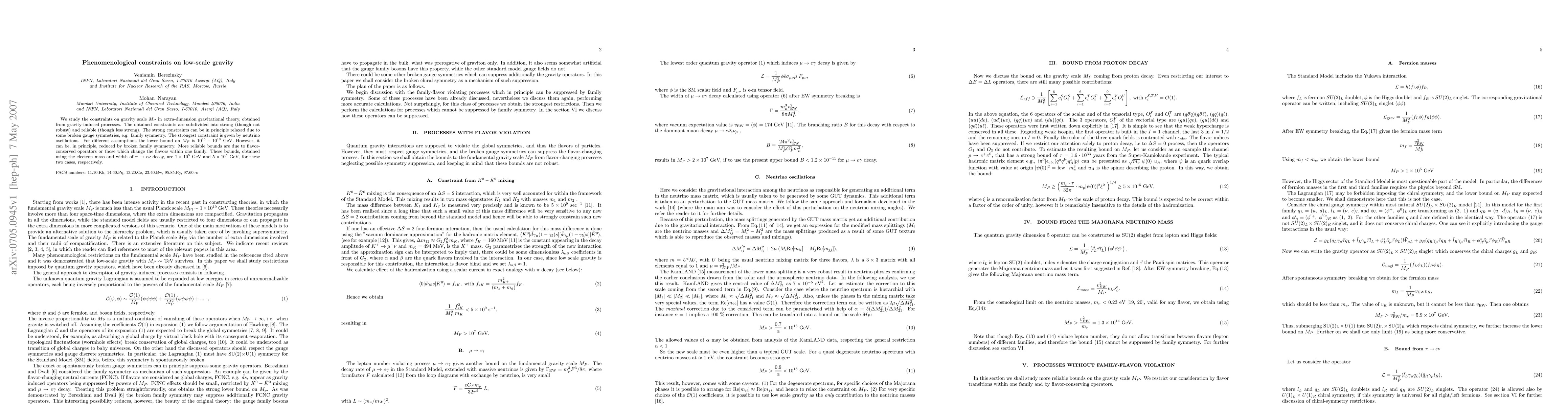 We study the constraints on gravity scale $M_P$ in extra-dimension gravitational theory, obtained from gravity-induced processes. The obtained constraints are subdivided into strong (though not robust) and reliable (though less strong). The strong constraints can be in principle relaxed due to some broken gauge symmetries, e.g. family symmetry. The strongest constraint is given by neutrino oscillations. For different assumptions the lower bound on $M_P$ is $10^{15} - 10^{18}$ GeV. However, it can be, in principle, reduced by broken family symmetry. More reliable bounds are due to flavor-conserved operators or those which change the flavors within one family. These bounds, obtained using the electron mass and width of $\pi \to e\nu$ decay, are $1\times 10^5$ GeV and $5\times 10^5$ GeV, for these two cases, respectively.