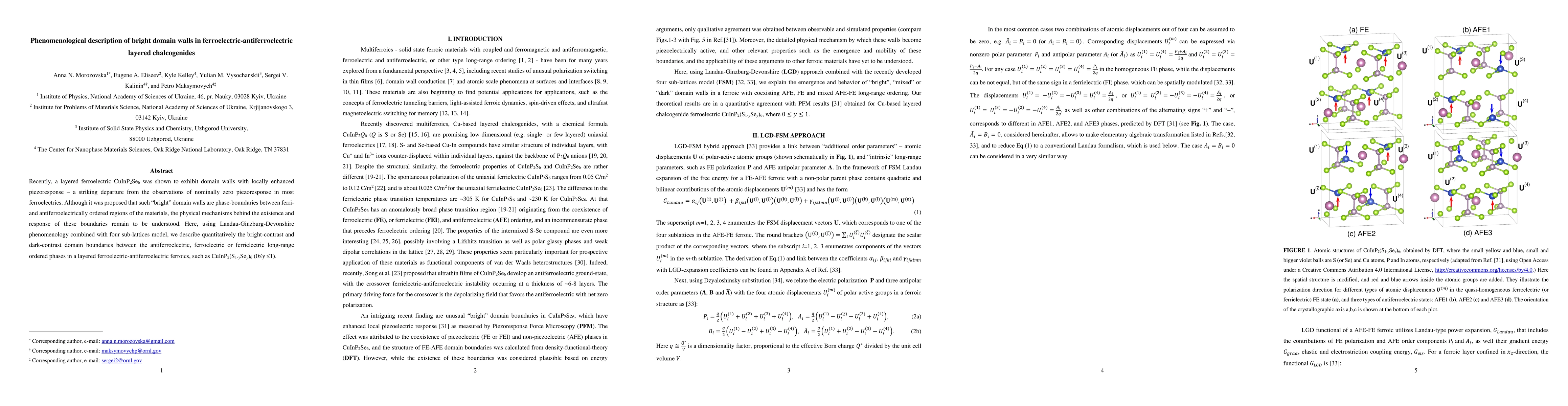 This paper employs Landau-Ginzburg-Devonshire phenomenology to quantitatively describe bright domain walls in layered ferroelectric-antiferroelectric chalcogenides like CuInP2Se6, where enhanced piezoresponse occurs at domain boundaries between different ordered phases. The study aims to elucidate the mechanisms behind the existence and behavior of these "bright" domain walls.